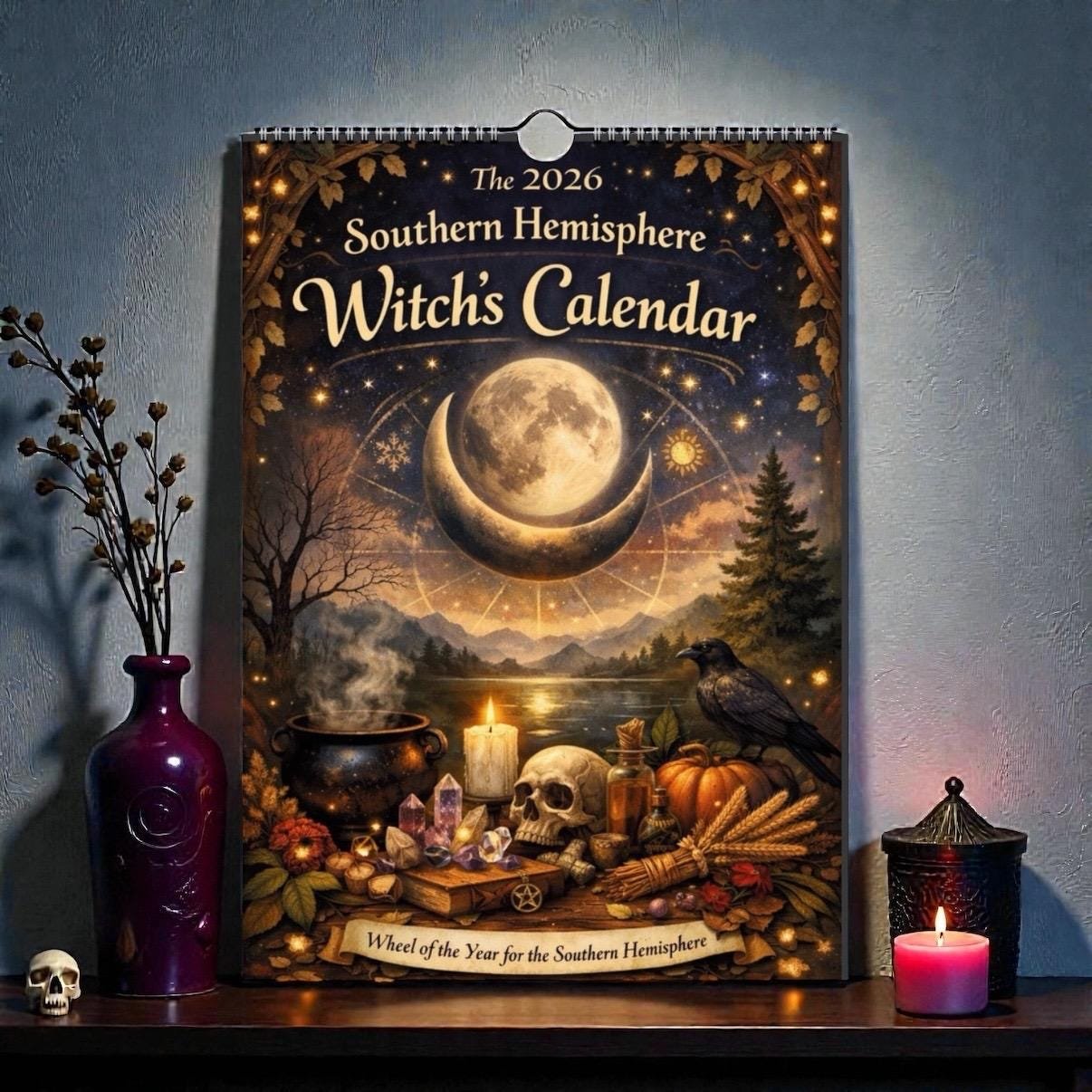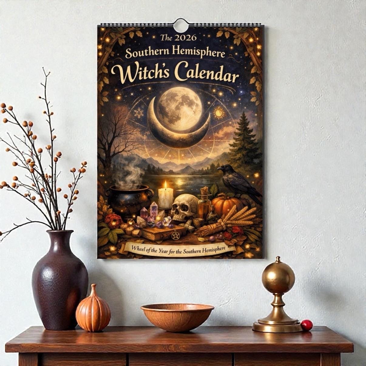 2026 Southern Hemisphere Witches Calendar – A4 Wall Calendar with Moon Phases, Sabbats & Ritual Themes