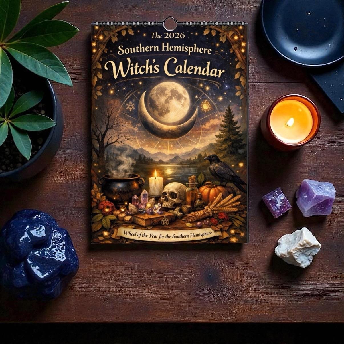 Step into the magic of the seasons with this beautifully illustrated 2026 Southern Hemisphere Witches Calendar, created especially for witches, pagans, and moon lovers living south of the equator.