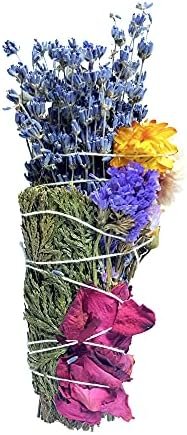 3 Pack 8.5″ Sage Smudge Kit with Flowers Smudge Sticks California White Sage Clusters Salvia apiana White Sage Cedar Selenite Amethyst for Home Religion Energy Spiritual Cleansing Blessing