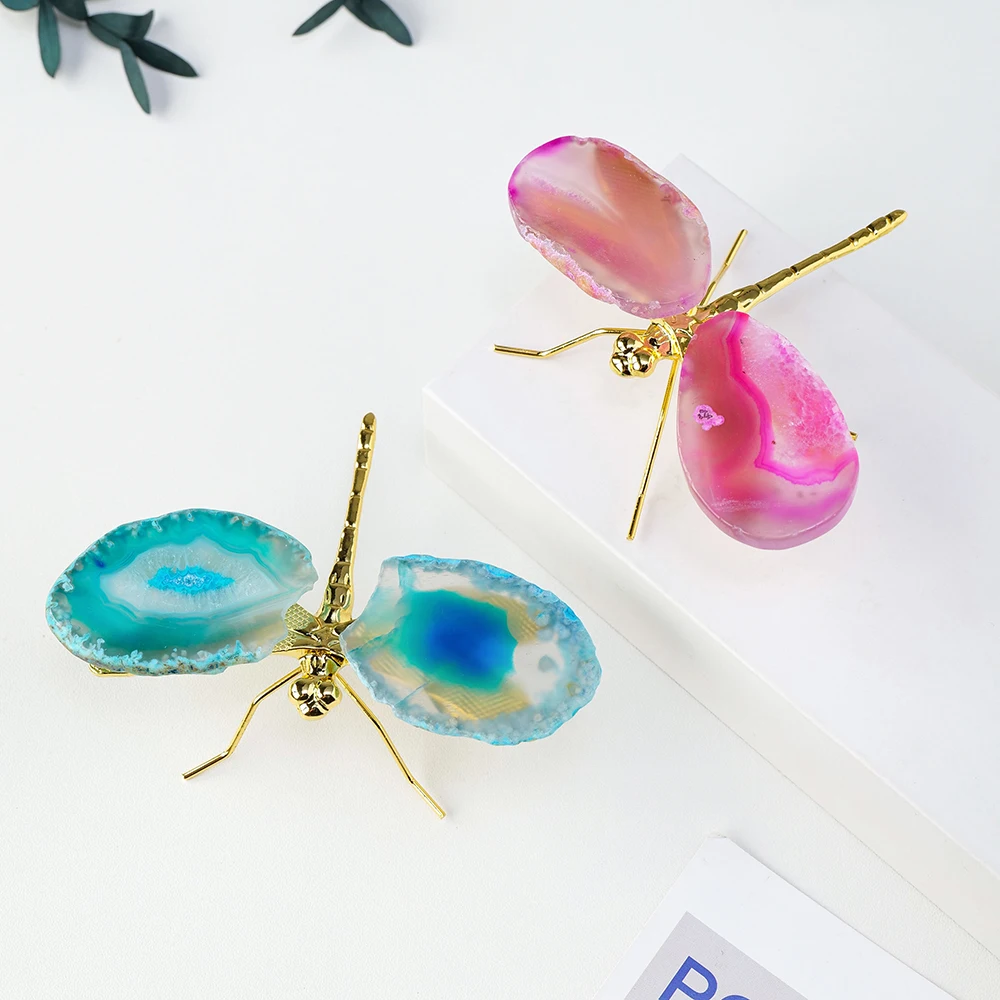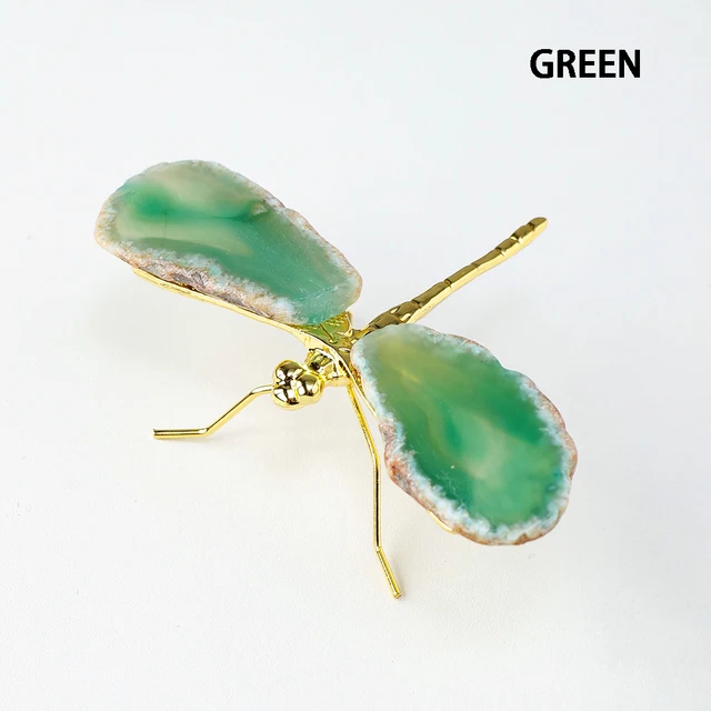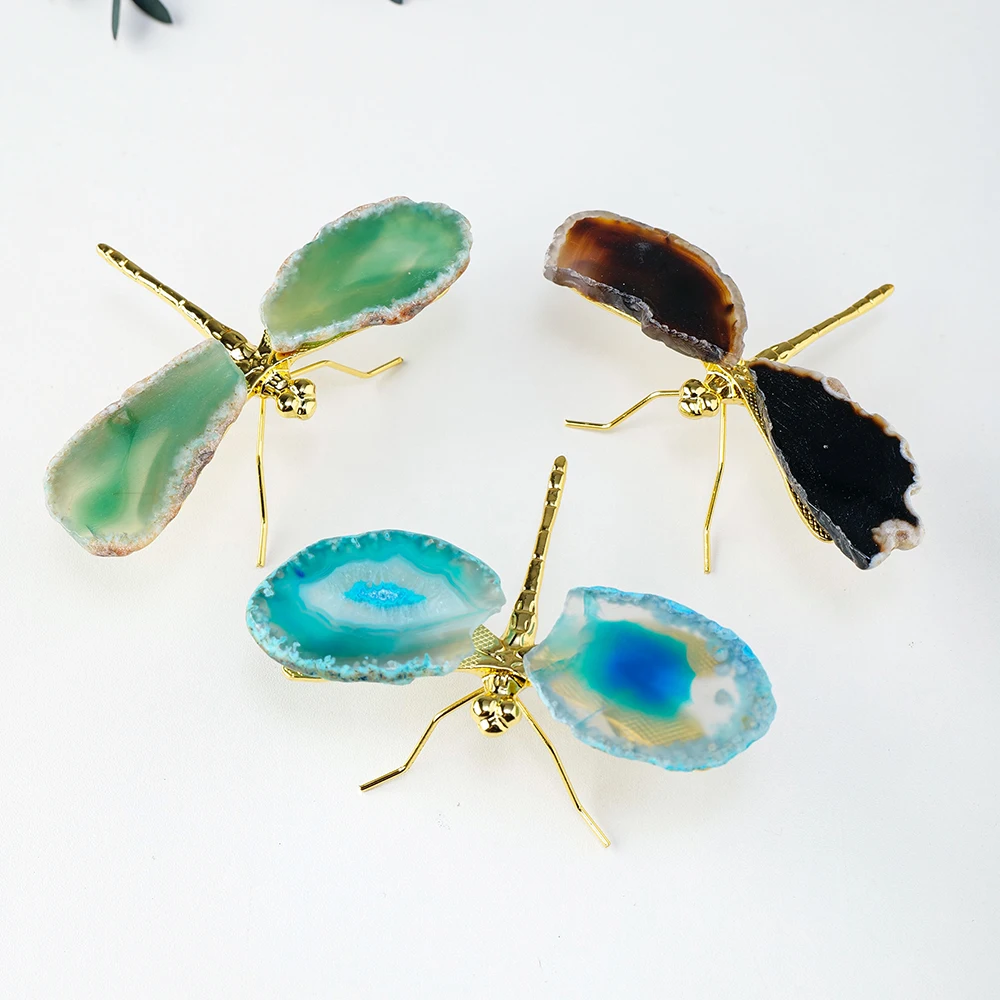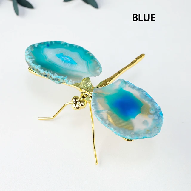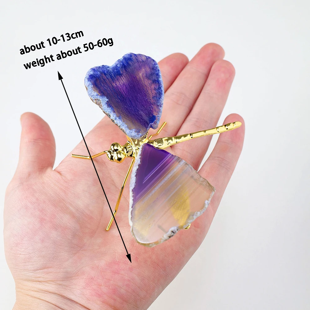 Agate Crystal Dragonfly. A beautiful addition to any home or office decor. Made with natural agate and brass, these dragonfly ornaments make great gifts for any dragonfly or crystal lover.