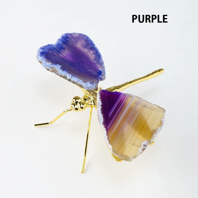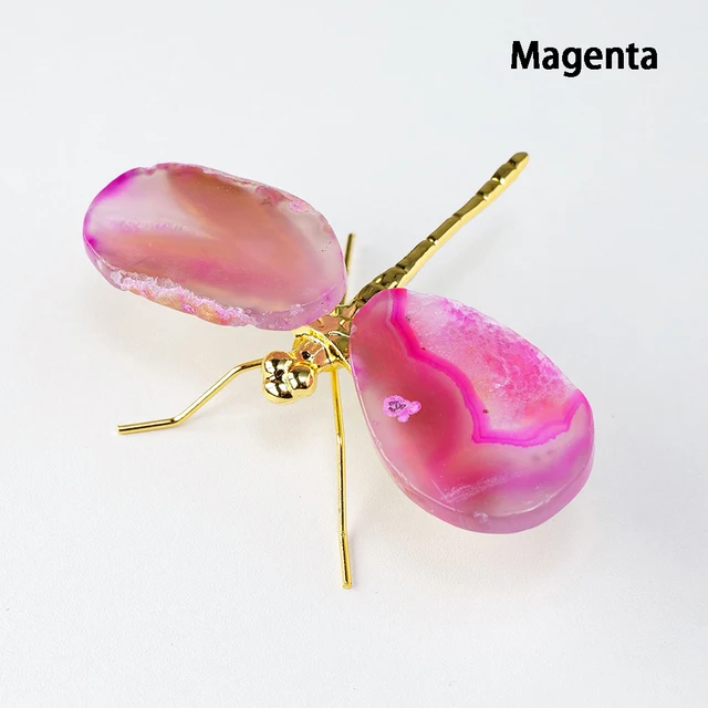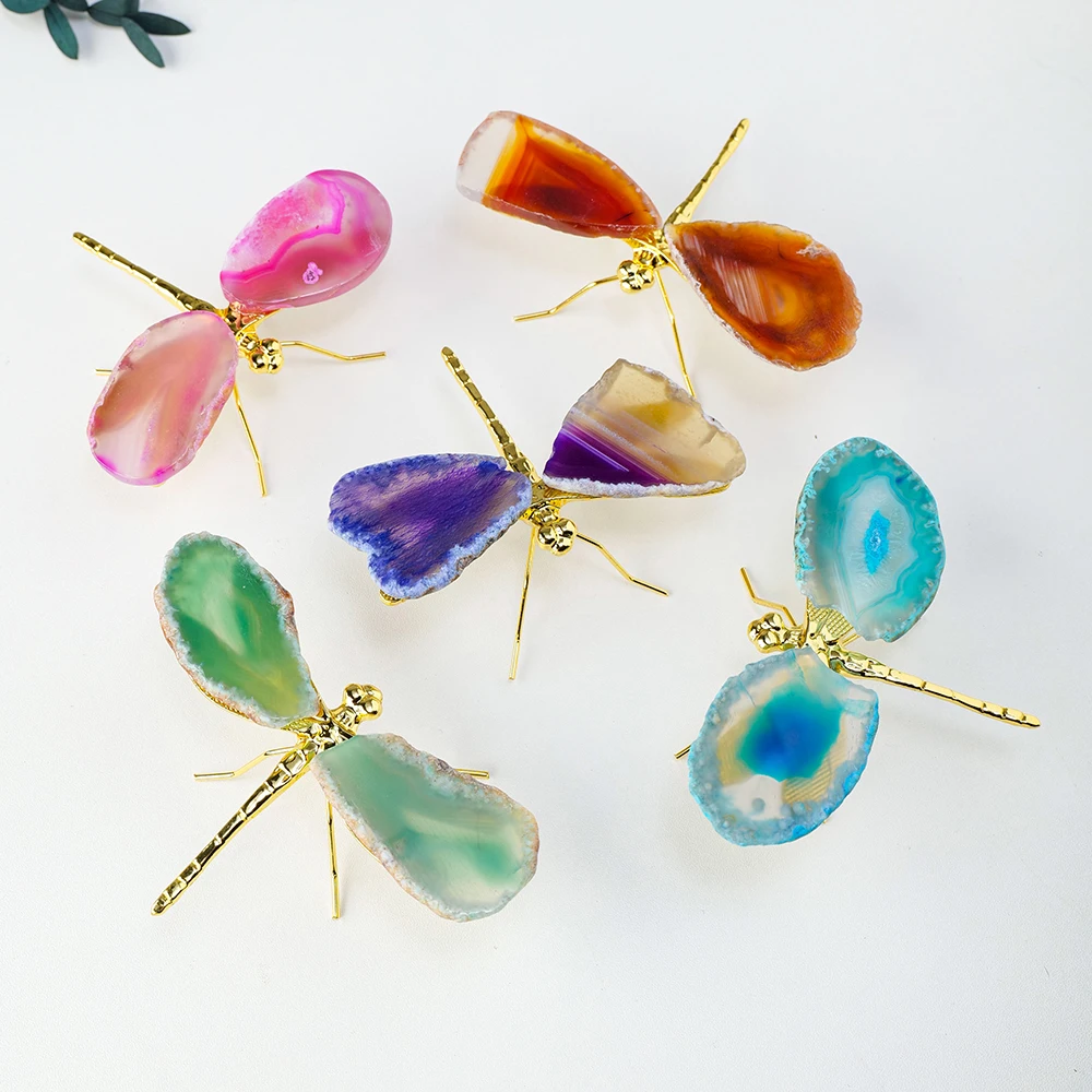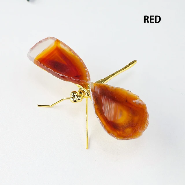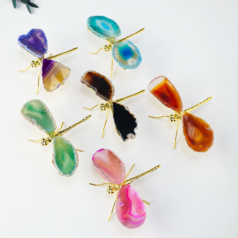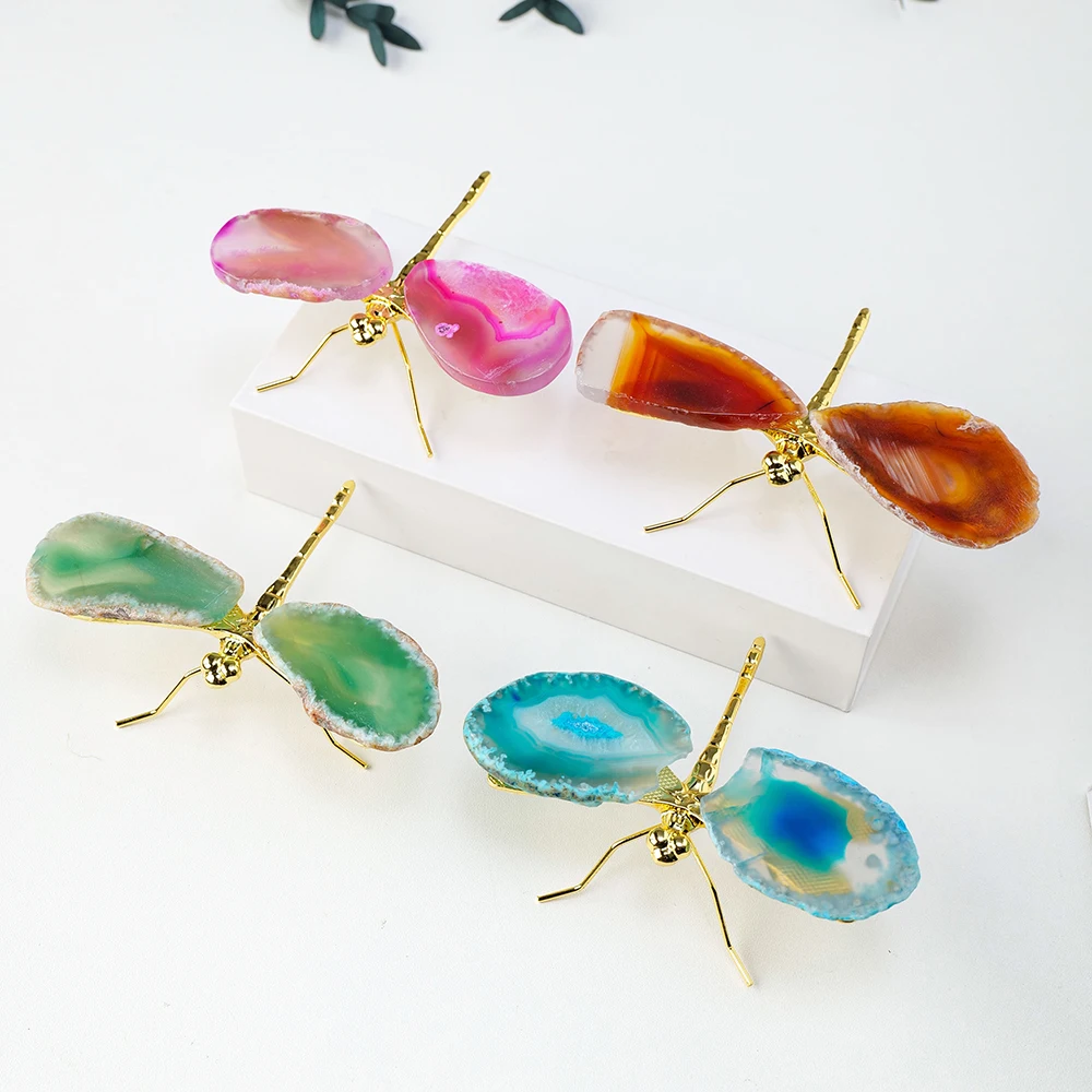 Agate Crystal Dragonfly. A beautiful addition to any home or office decor. Made with natural agate and brass, these dragonfly ornaments make great gifts for any dragonfly or crystal lover.