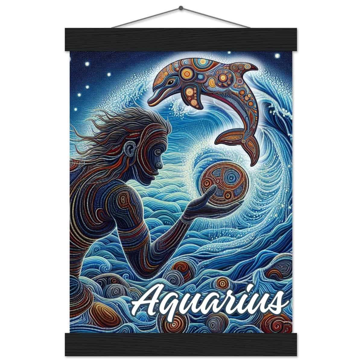Aquarius Dot Art Poster. Premium poster with magnetic hanger to preserve your print. Celebrate Aquarius with this Aboriginal dot art design.