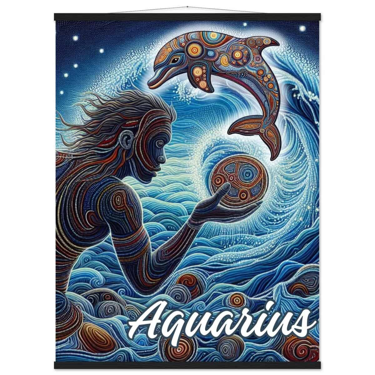 Aquarius Dot Art Poster. Premium poster with magnetic hanger to preserve your print. Celebrate Aquarius with this Aboriginal dot art design.