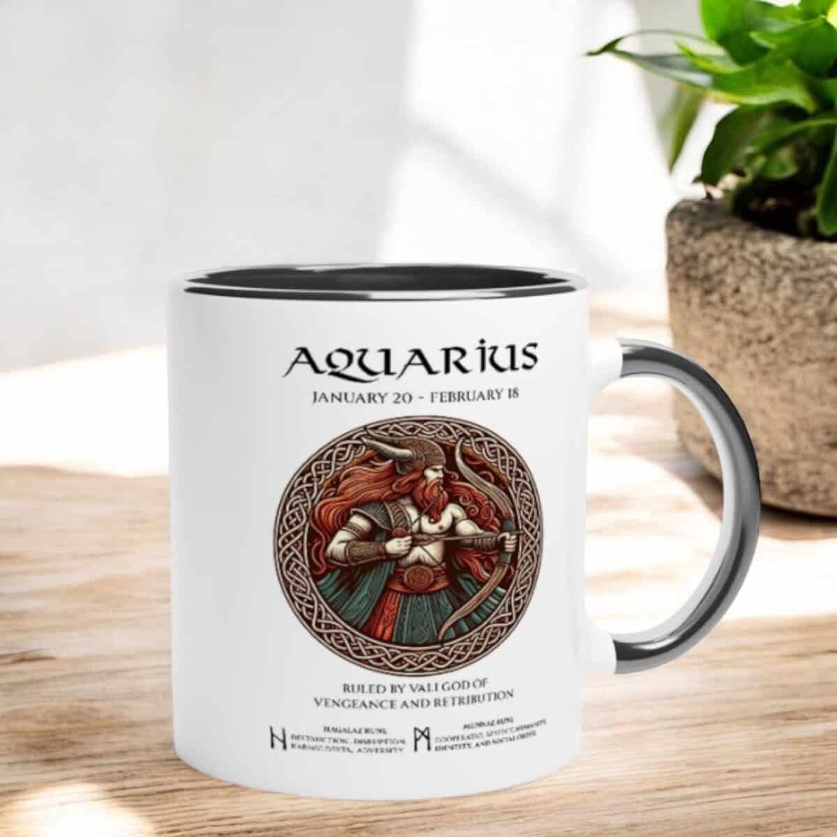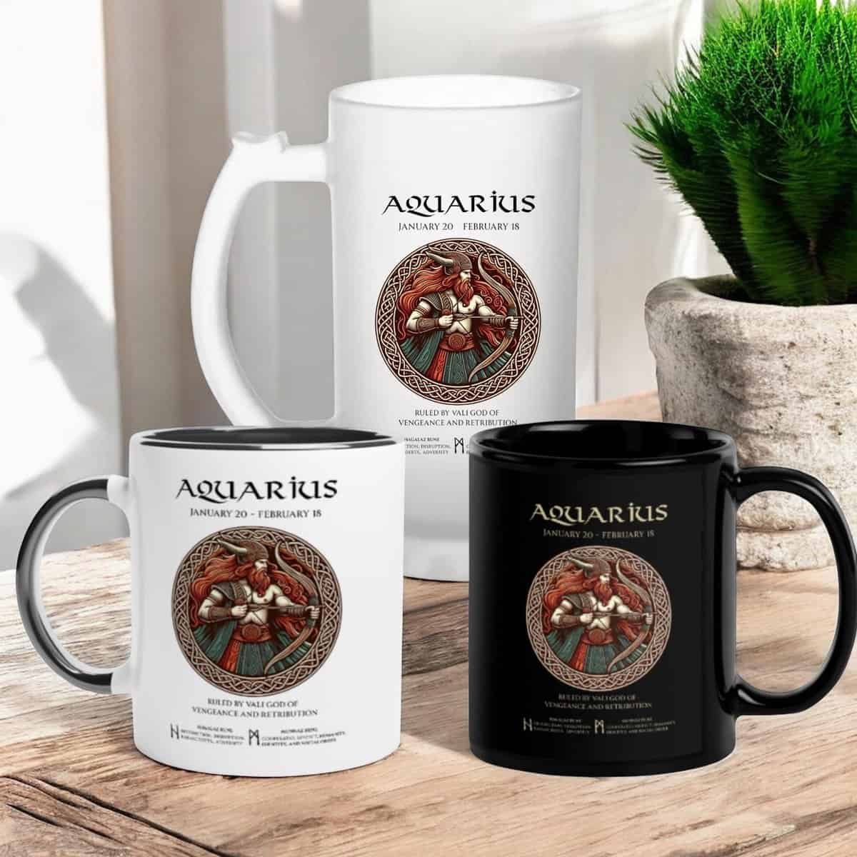 Aquarius Zodiac Viking God Vali and Runes. Coffee or Beer Mugs