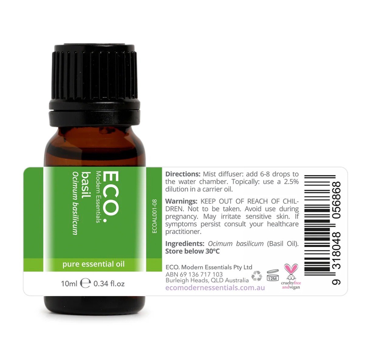 Fresh, herbaceous Basil Essential Oil (Ocimum basilicum) 10ml. Uplifting aromatherapy oil for focus, clarity and relaxation. Perfect for diffusers, blends and natural wellness.