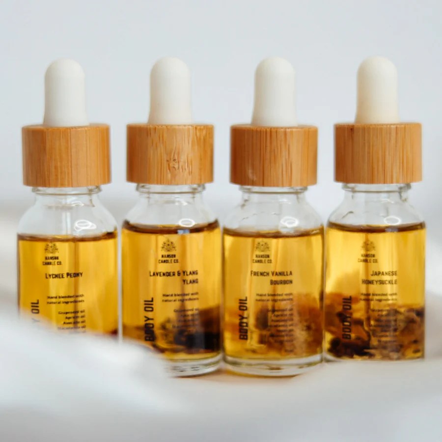 Step into a world of self-indulgence and skin revitalization with Hanson Candle Co’s Body Oil Testers. Our handpicked collection, now in a convenient 4-pack, the perfect blend of natural ingredients, tailored to your skin’s distinct needs. Each 15ml tester is a unique blend, combining only the finest natural ingredients with captivating fragrances, to deliver an extraordinary and nurturing body oil experience. Reveal the secrets of personalised care and natural luxury with every use.