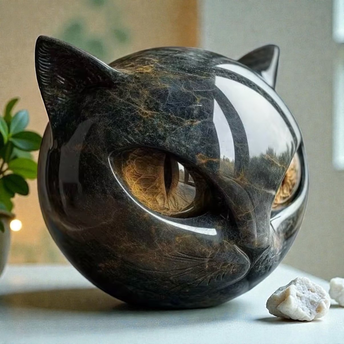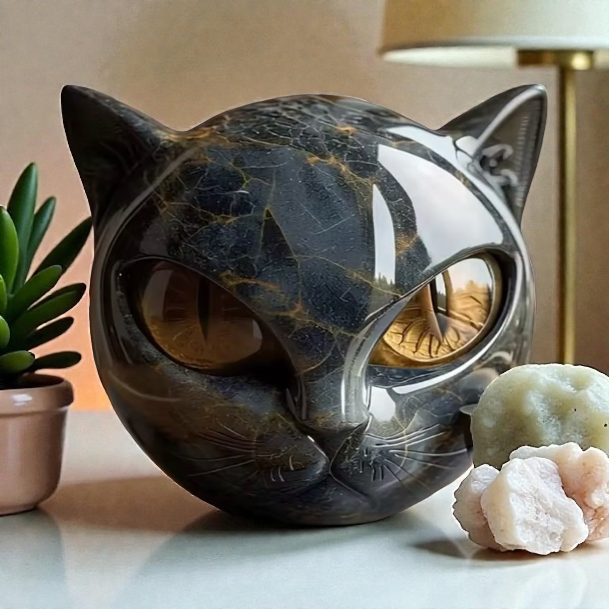 Add a touch of mystery and elegance to your space with this marble-effect resin cat head ornament. Featuring a sleek sculptural form and striking, customisable eyes, this piece blends modern décor with symbolic charm. Perfect for cat lovers, gothic interiors, spiritual spaces, or unique gift collections.