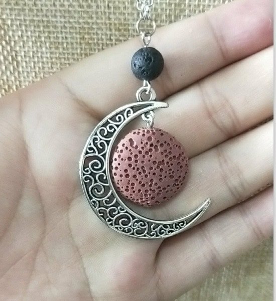 Cresent Moon Lava Bead Aroma / Perfume Necklace