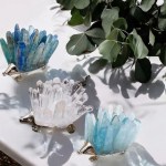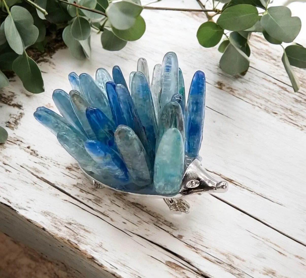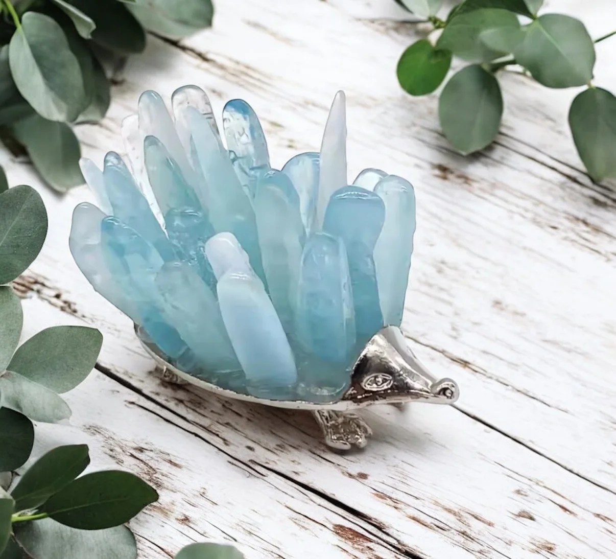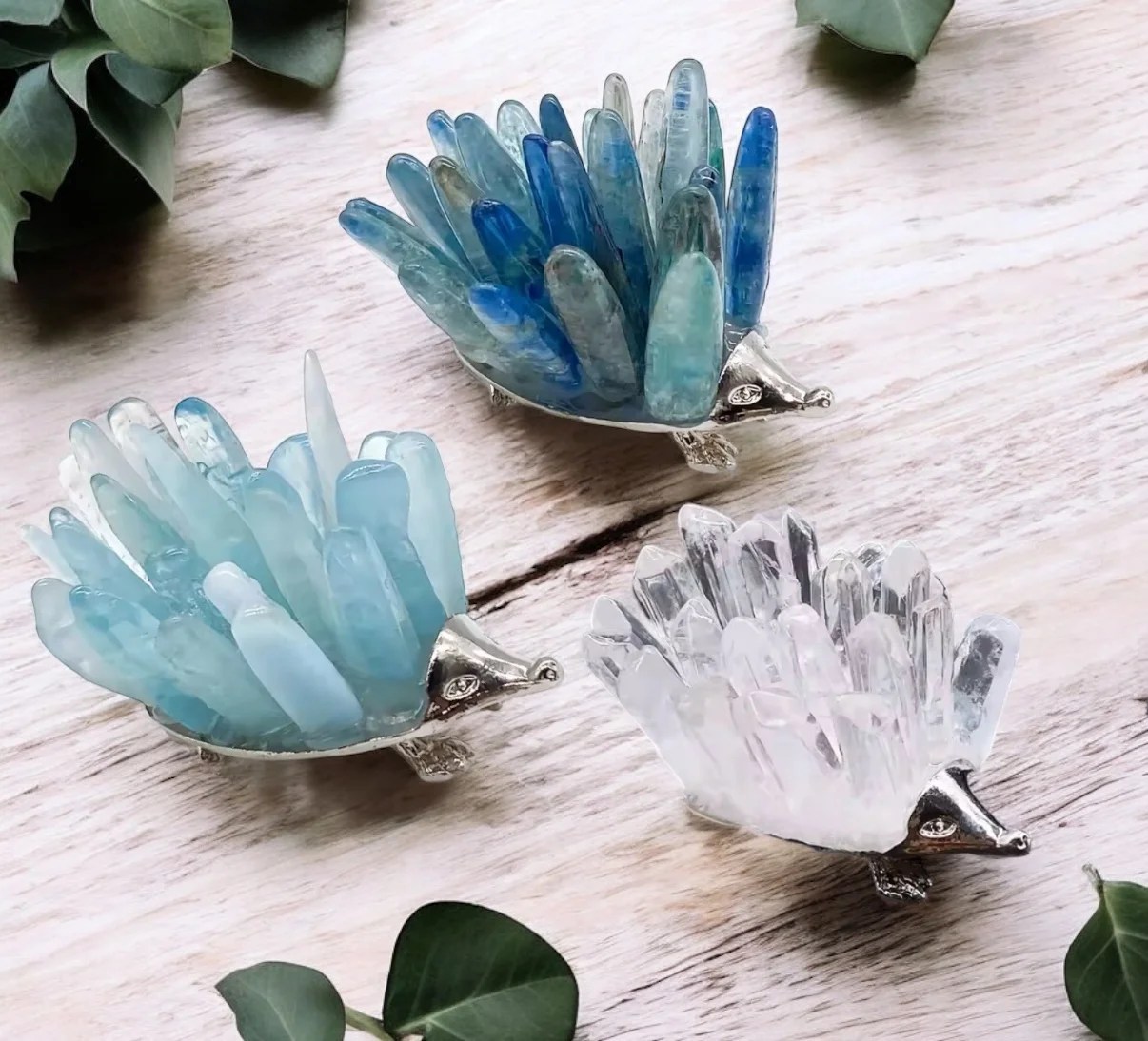Crystal Echidna Figurines – Aquamarine, Clear Quartz & Blue Kyanite