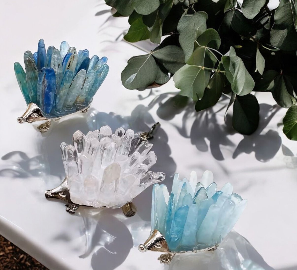 Crystal Echidna Figurines – Aquamarine, Clear Quartz & Blue Kyanite