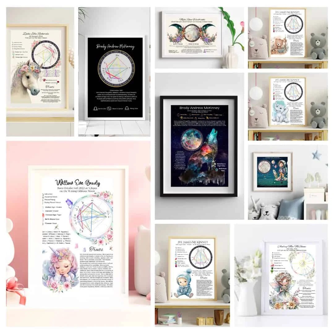 Custom Birth Chart. Whether you are searching for a memorable baby gift or a unique birthday present, our Custom Birth Chart is the perfect choice. Delight the special people in your life with a sentimental and nostalgic keepsake that celebrates their cosmic journey. Each chart is a heartfelt reminder of their place in the universe.