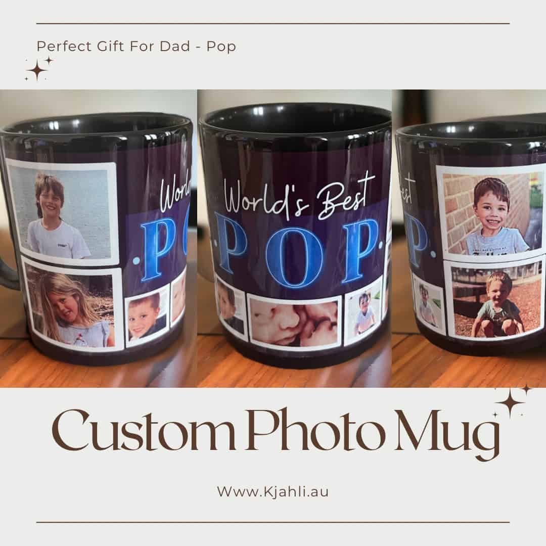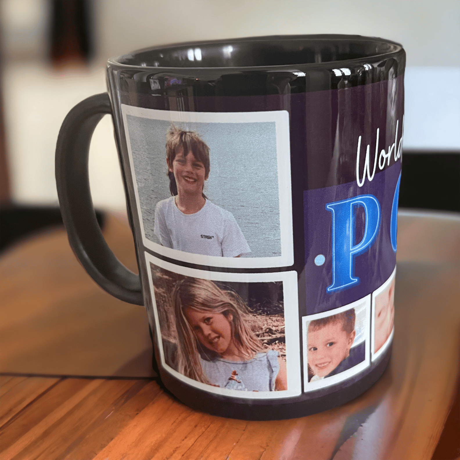 Give Dad, Pop or even Step Dads a gift they will love with these custom photo mugs. Send us your photos and we will edit and arrange on the mug for you. Add any wording you like.