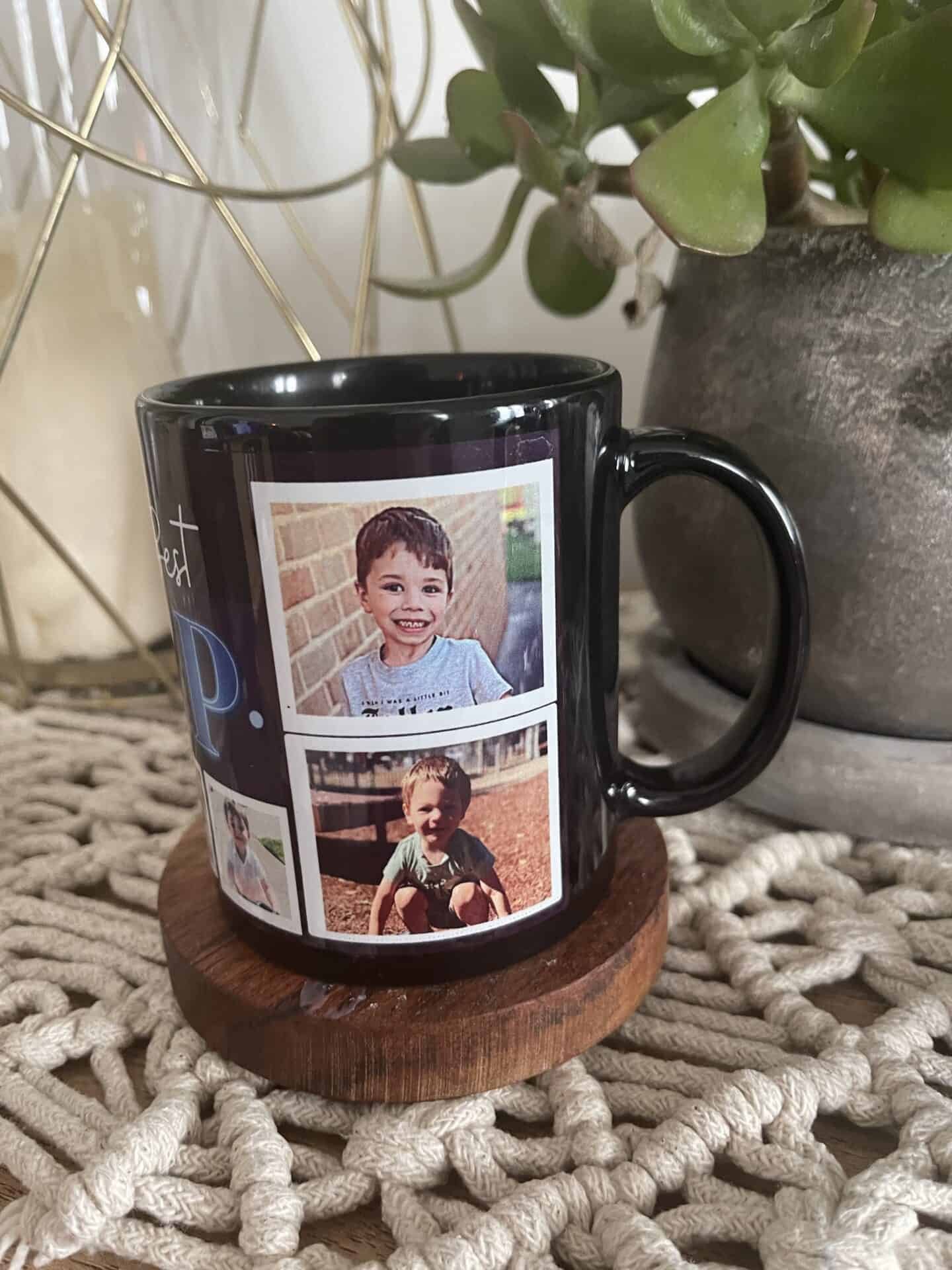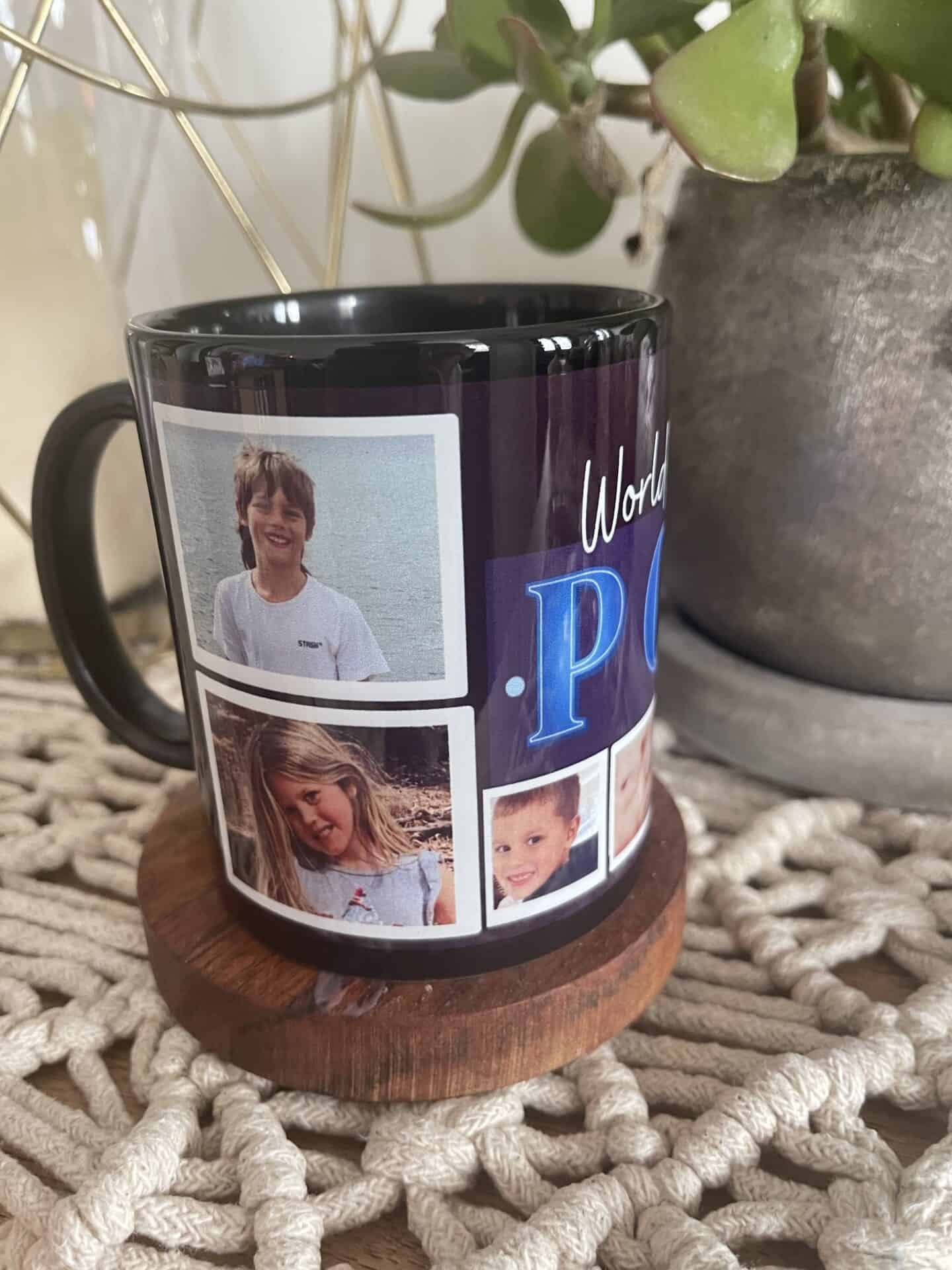 This custom photo mug allows you to add photos of all the kids, grandkids or loved ones.