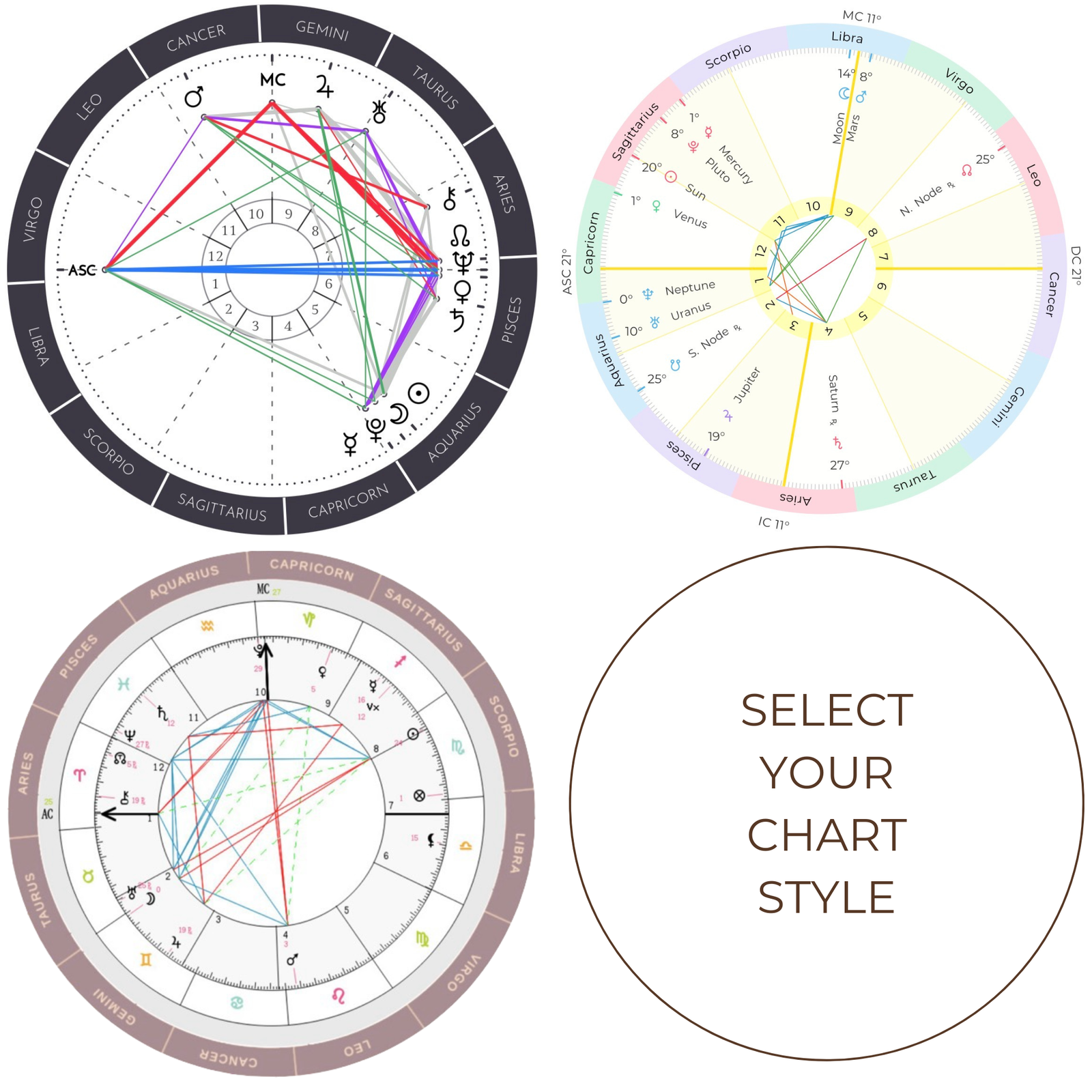 🌙 Natal chart wheel (pastel, natural, or black theme)