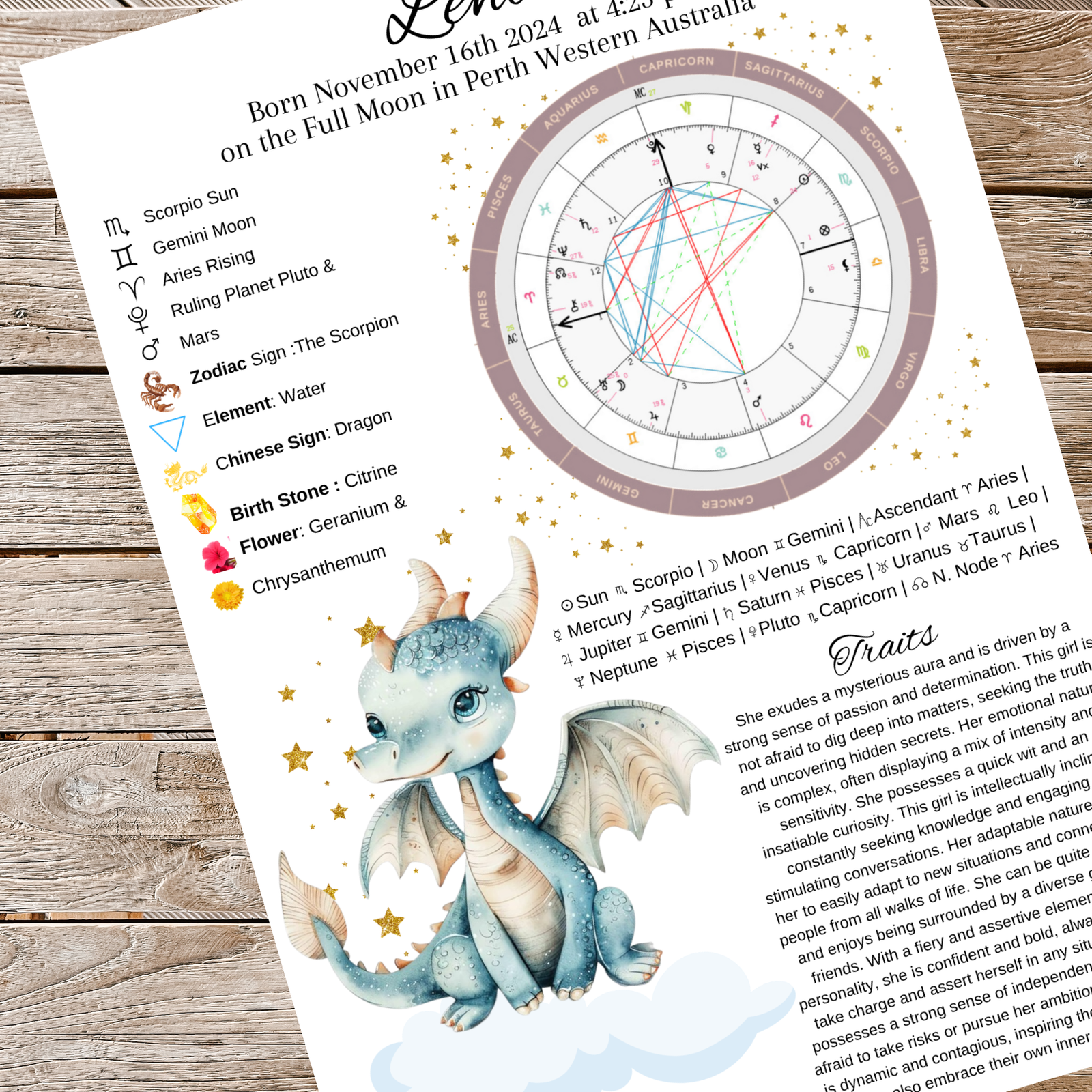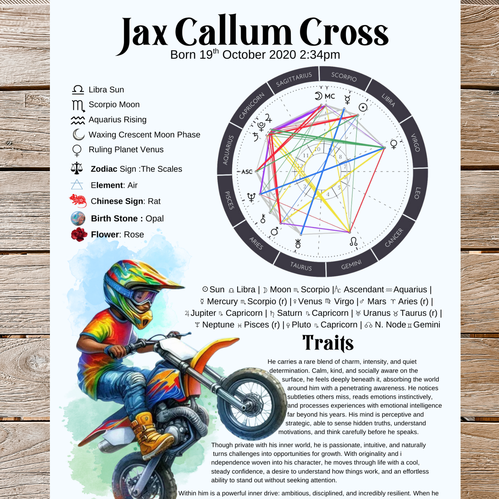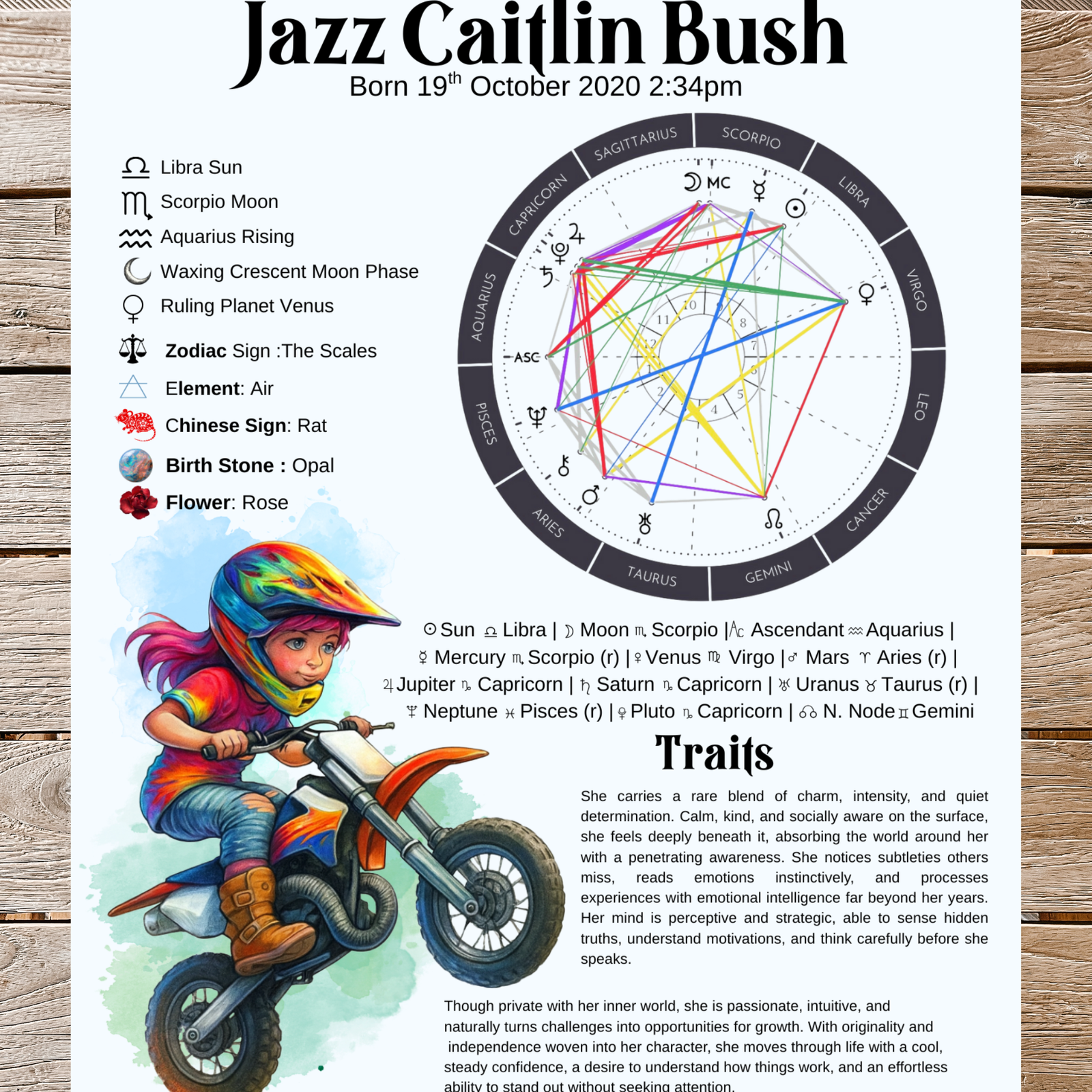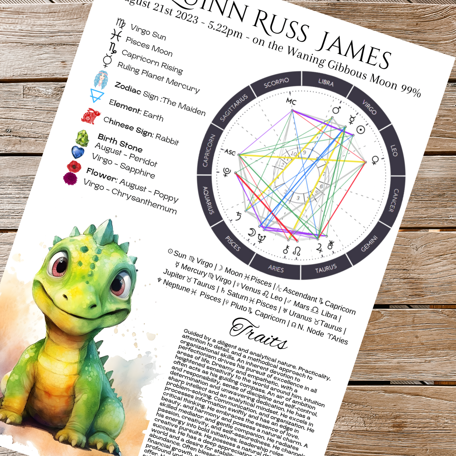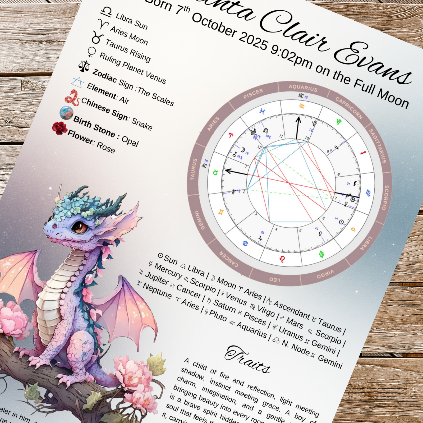 This is more than a chart — it’s a story of birth, personality, and cosmic identity. A timeless piece that grows with your child or becomes a cherished personal keepsake.