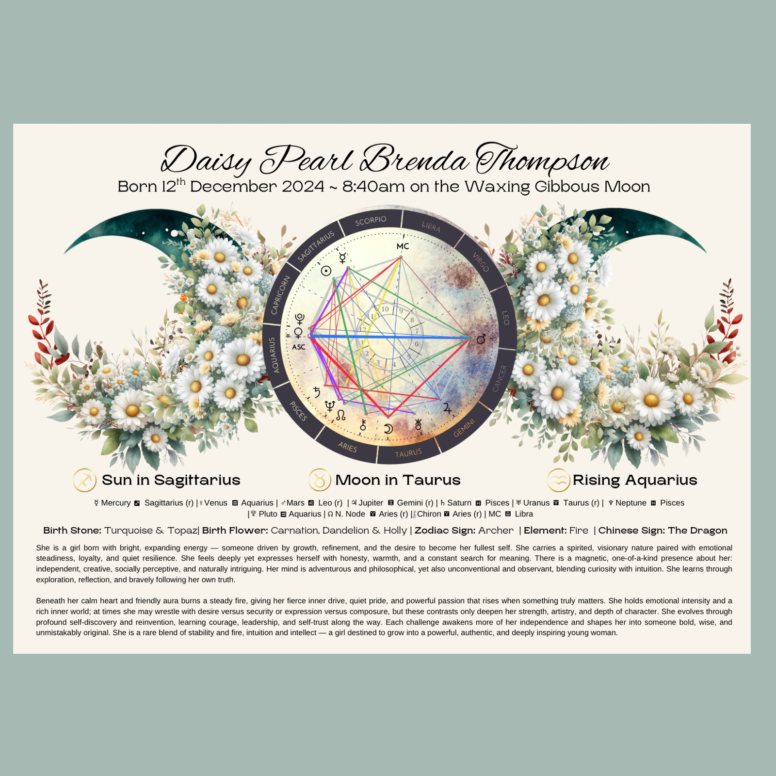 • Unique, custom-created artwork tailored to your birth details.