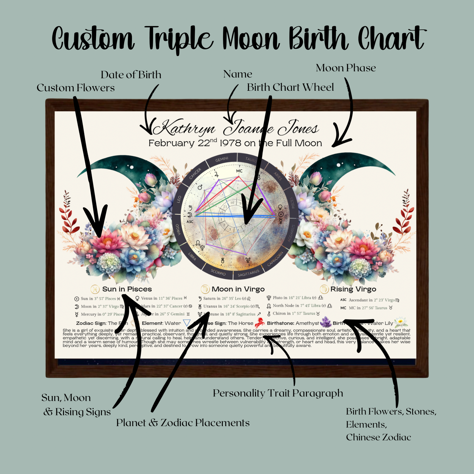 Triple Moon Custom Birth Chart Reading – Astrology Print