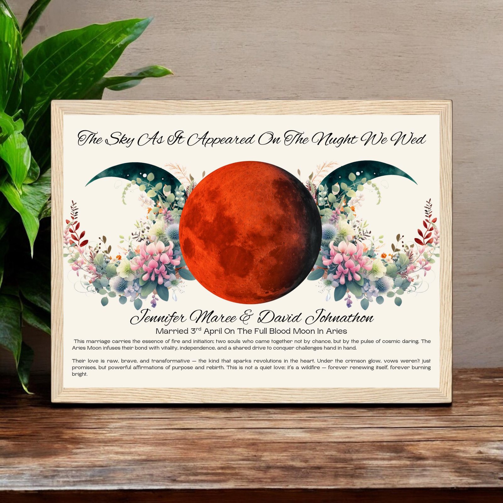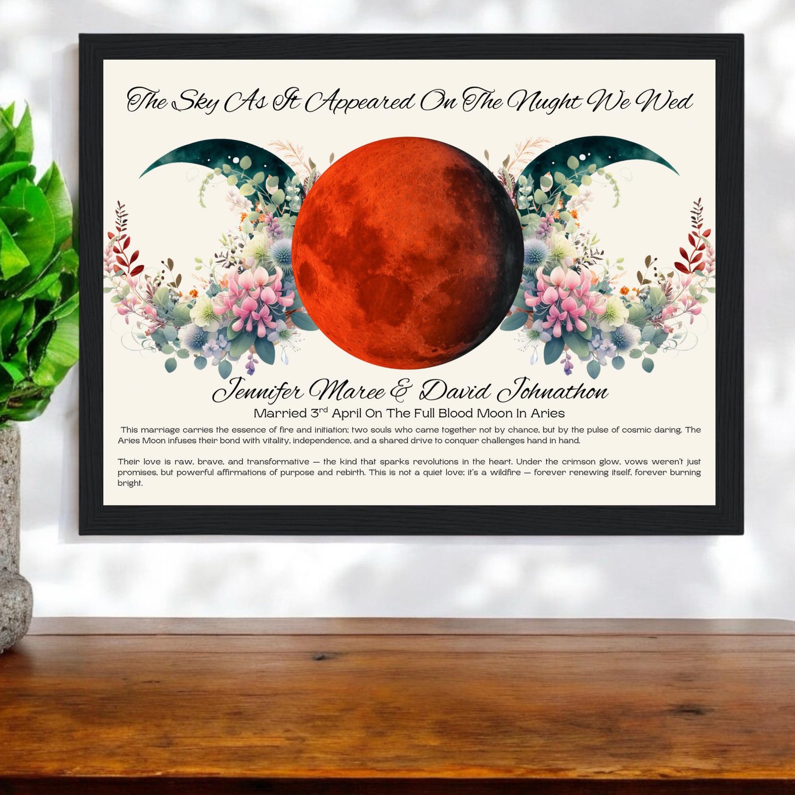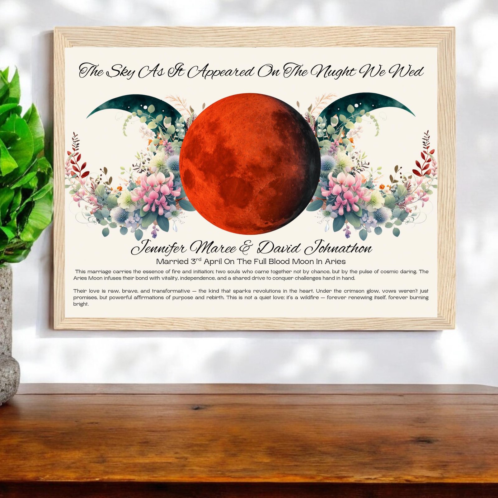 Custom Triple Moon Couple Print — Personalised Moon Phase, Zodiac & Wedding Art