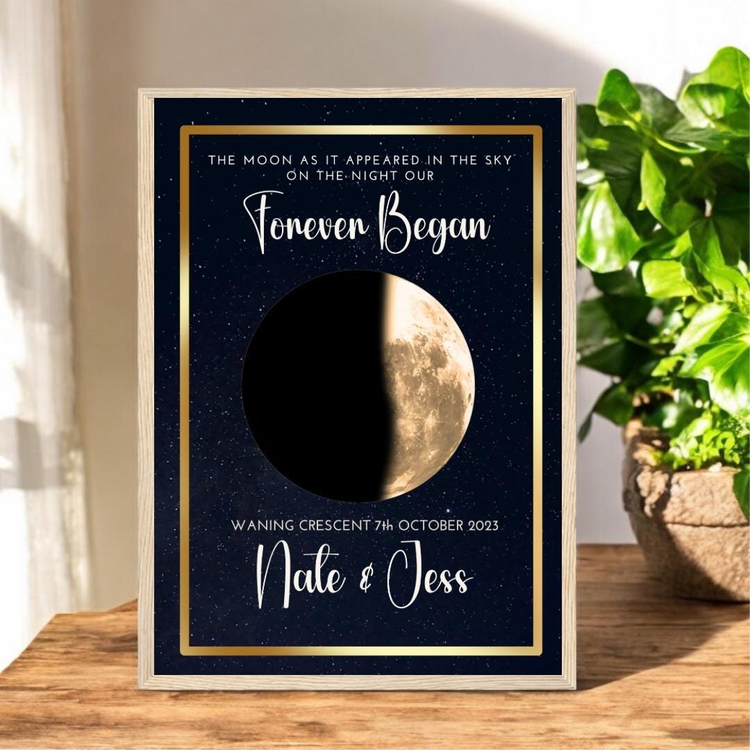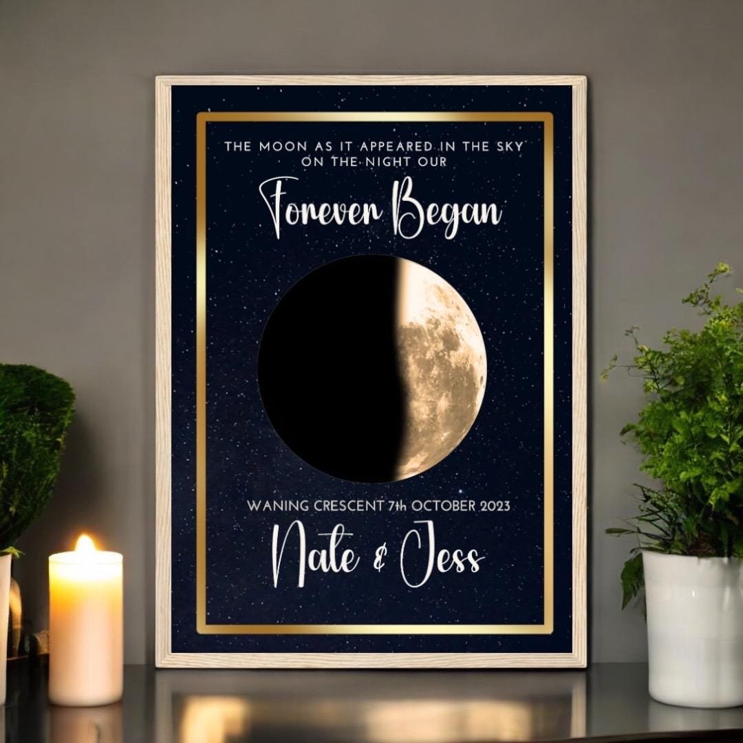 Customised Golden Moon Phase on a stary night – Gift for Couples, Engagement , Wedding , Anniversary