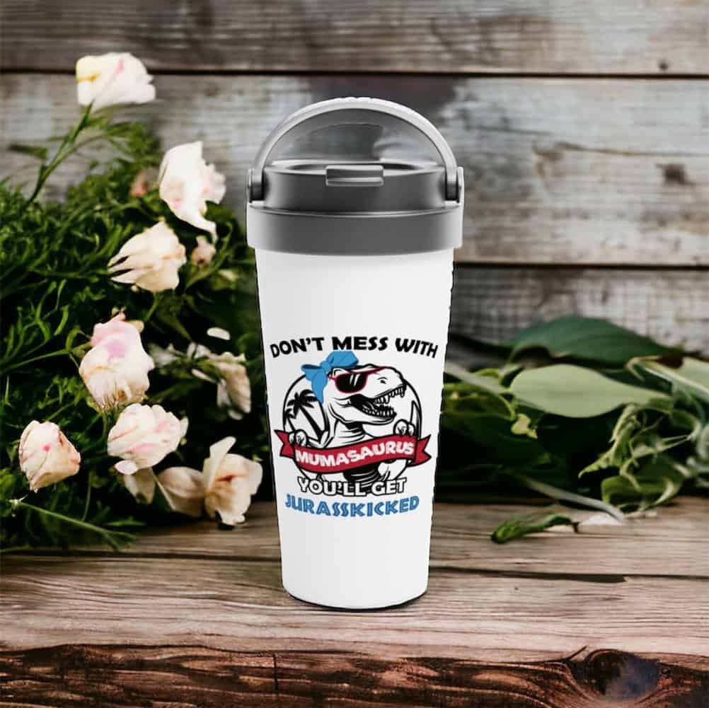 Don’t Mess With Mumasaurus or you’ll get Jurasskicked Mug, Travel Mug or Keyring. Perfect gift for Mum. Change the wording for Nans, Aunty, Sister or anything you like.