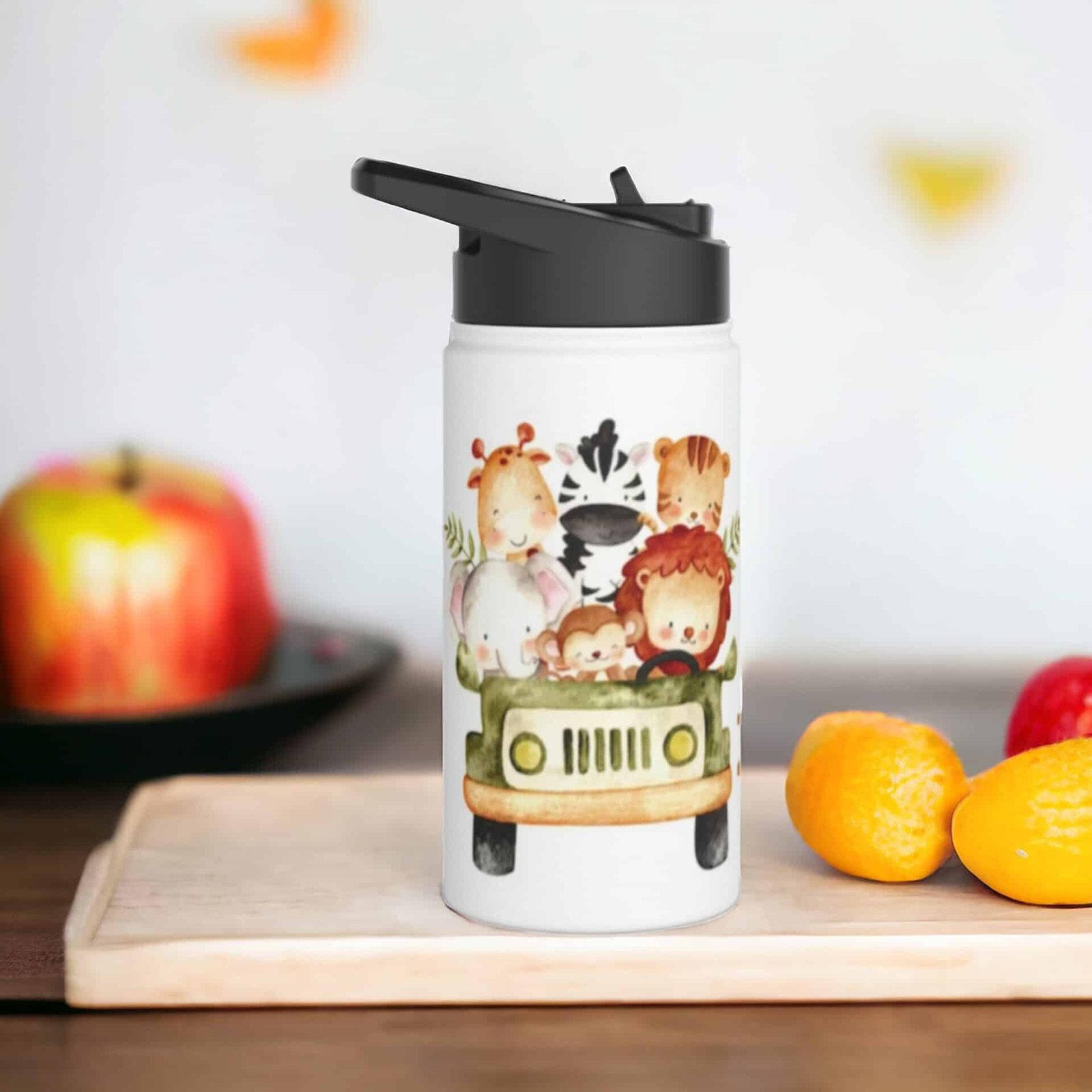 Driving Jungle Animals Personalised Water Bottle perfect for toddlers.