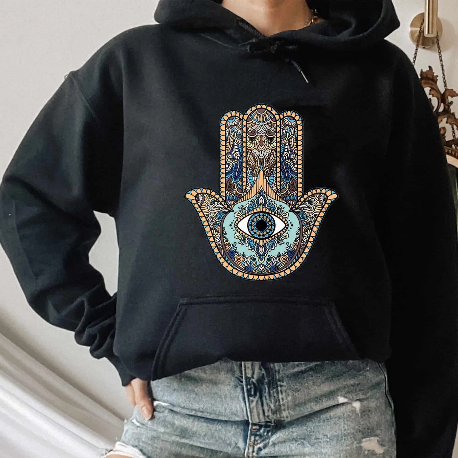 Tags: graphic, hasma hand, hooded jumper, hoodie, metaphysical design, spiritual design, witchy design, womans, women