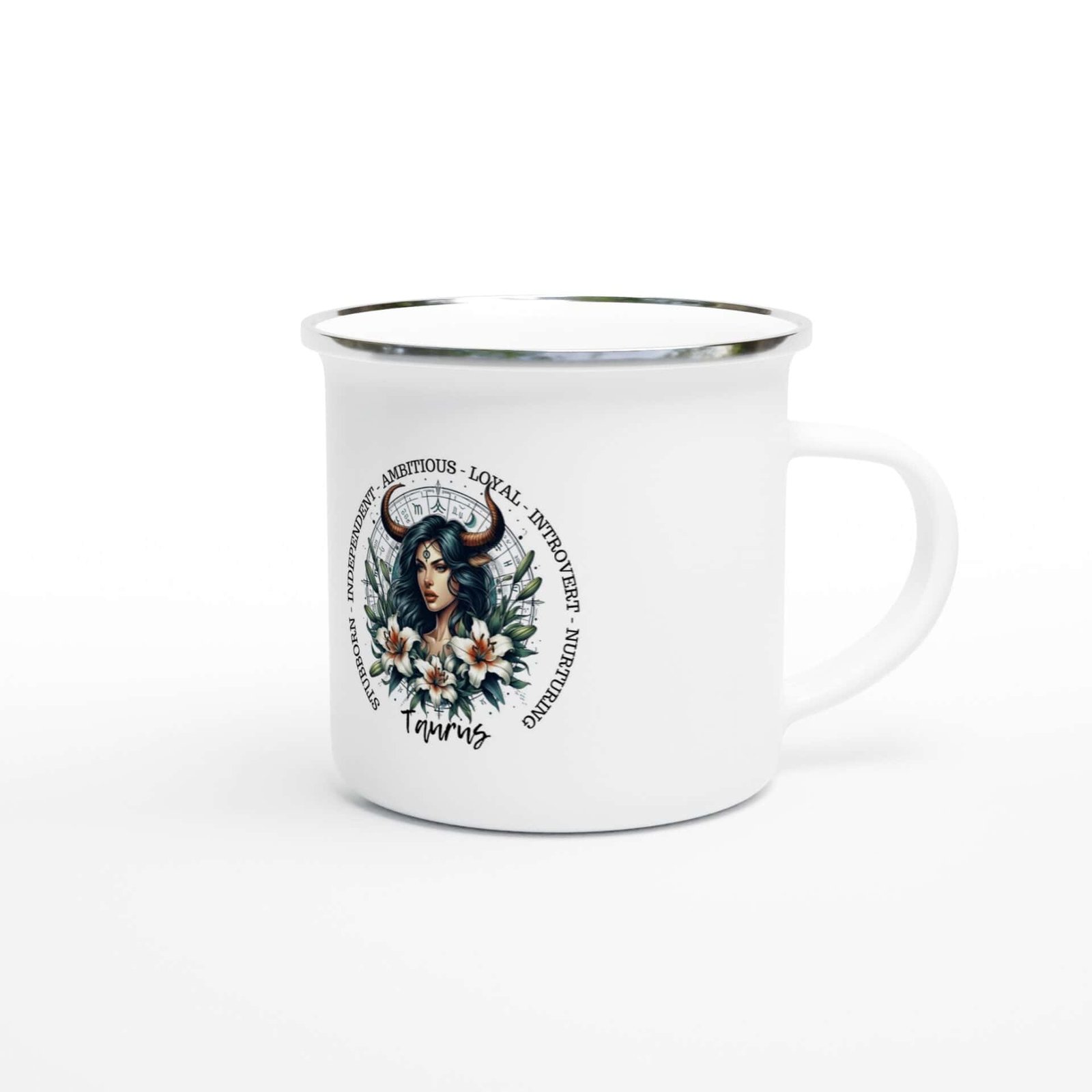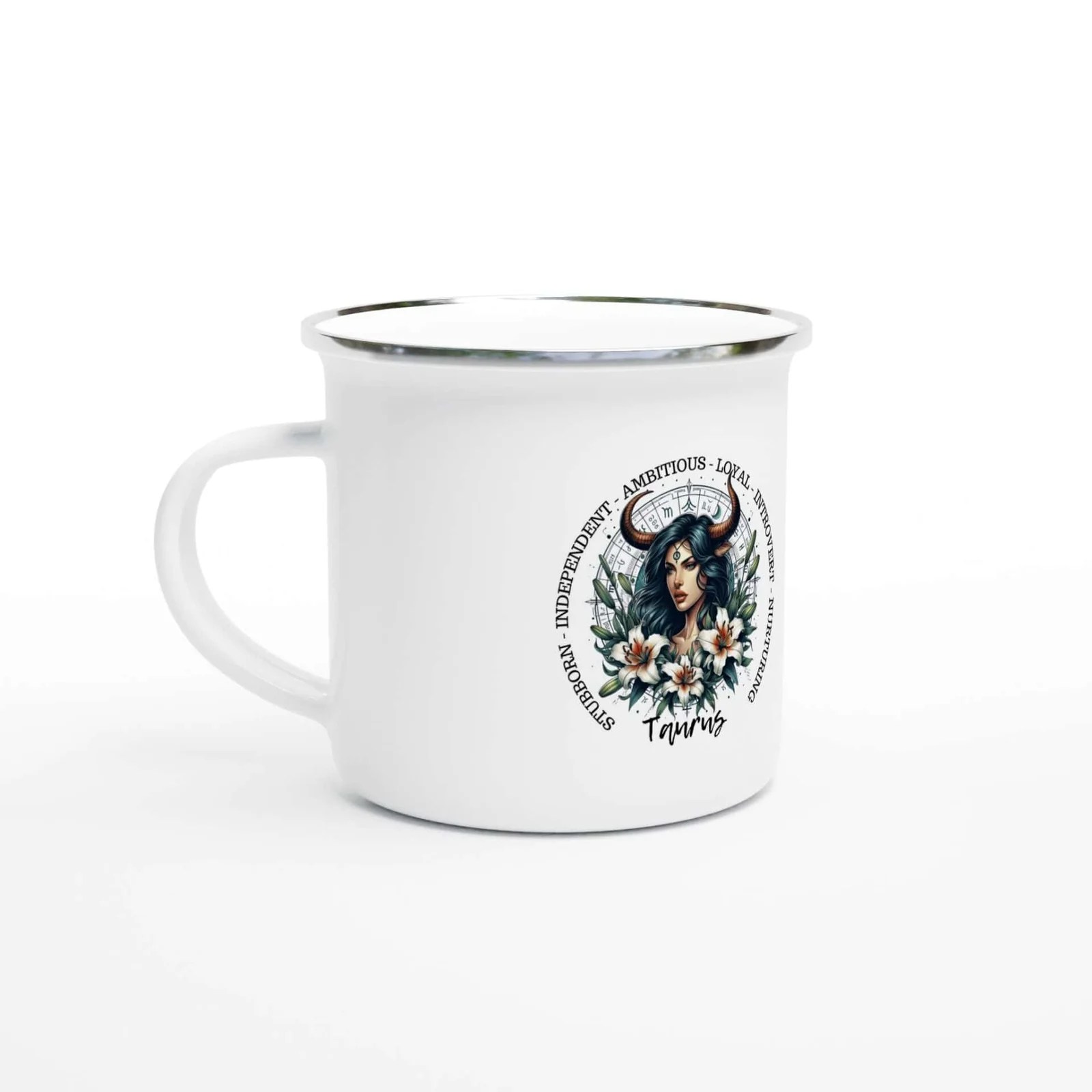 Horned Woman Taurus 12 oz enamel mug. Perfect for camping and outdoors.