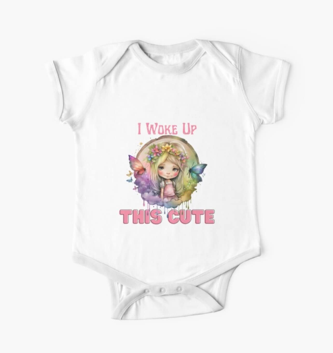 Cute water colour little girl with flowers in her her surrounded by butterflies printed on a cotton onsie, in short or long sleeves.