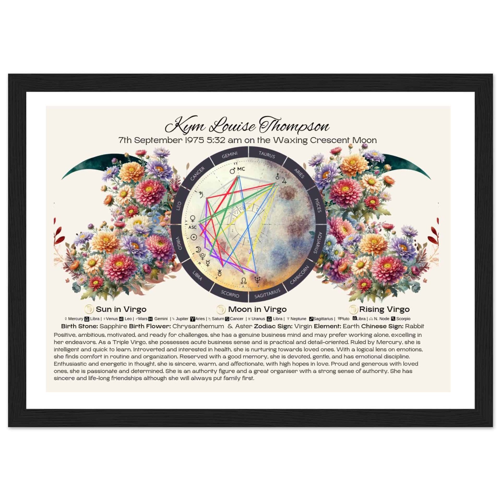 Our Libra Birth Chart & Traits Triple Moon Downloadable file or Framed Print is personalised and using the date, time and place of birth of the person your framed print is for.