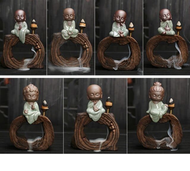 This Buddha Back-flow Incense Burner has been carefully handmade with ceramic. When the incense cone is lit, the aroma and smoke mist will slide down the burner, creating a cascade-like effect! Select 1 little Buddha or get the whole set