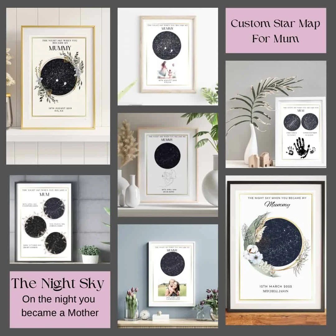 These night sky star maps make the perfect gift for Mothers or Grandmothers. New mother, Mother’s Day, Birthday, Christmas or just because .