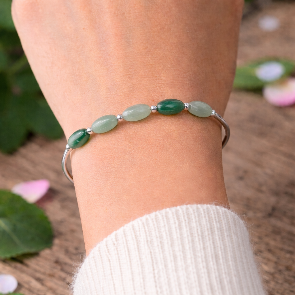 Each stone carries its own unique shade of soft to deep green, making every bracelet one-of-a-kind — a meaningful piece for both style and spiritual connection.