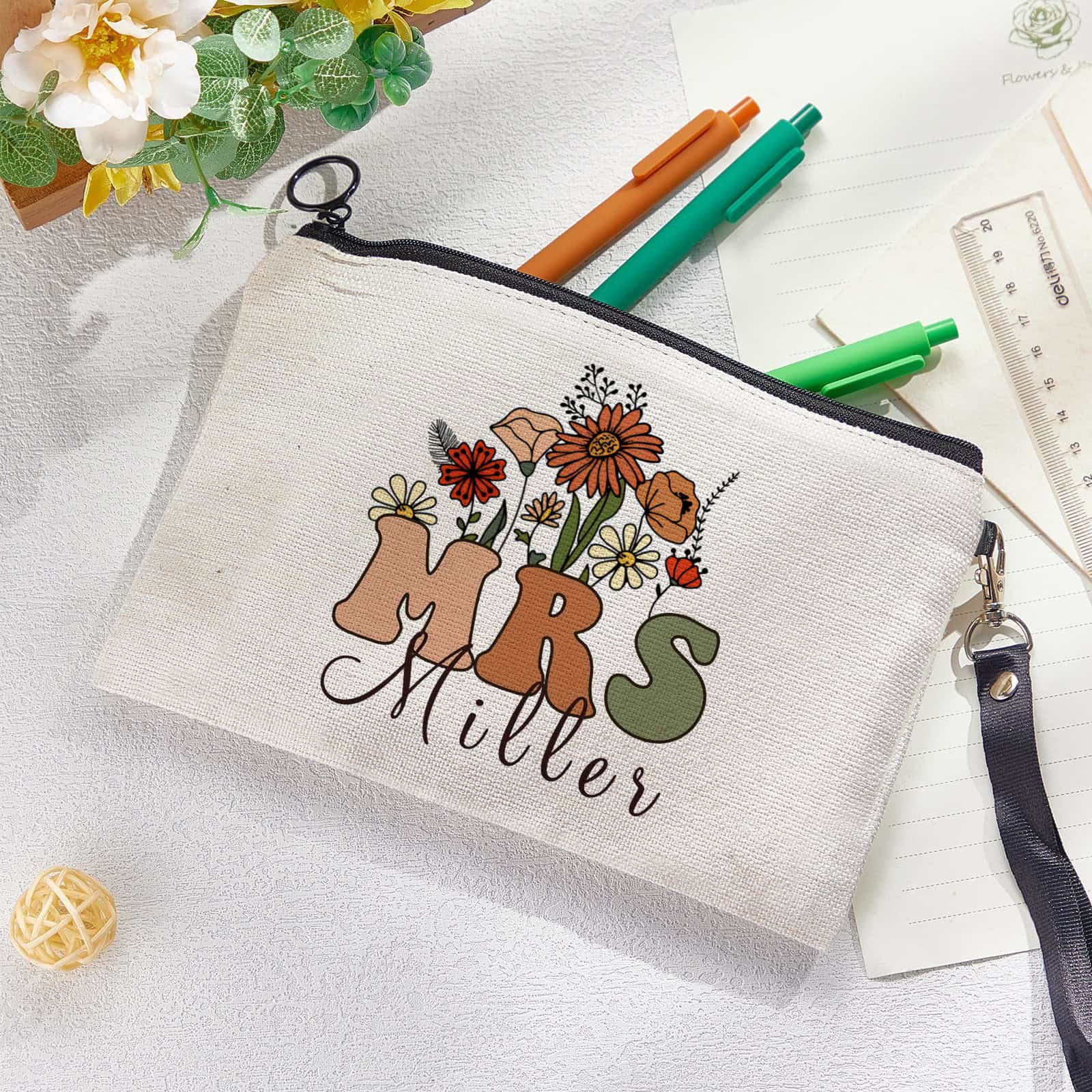 Personalised Flower Pencil Canvas Makeup Bag with Name Appreciation Back to School Gift for Teacher