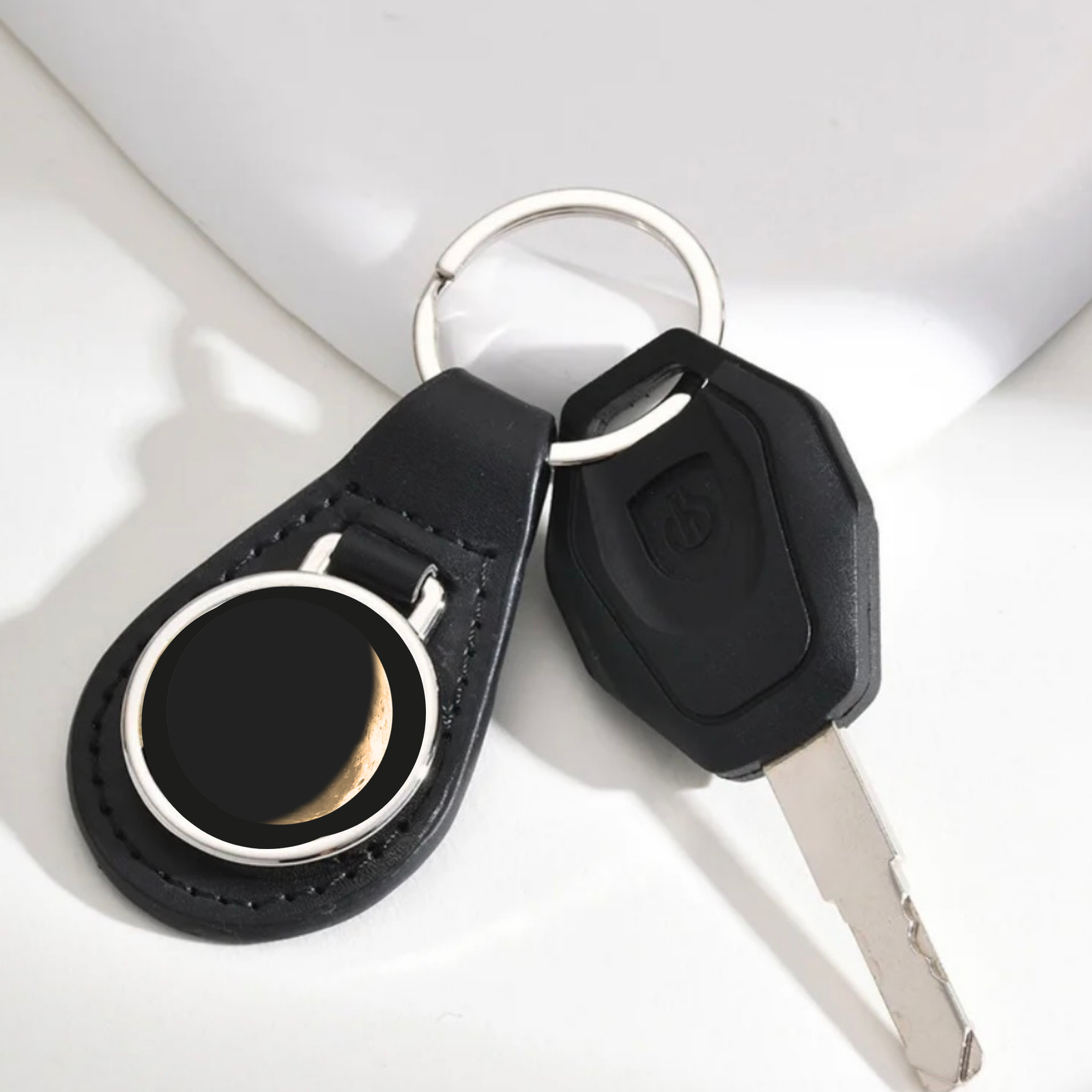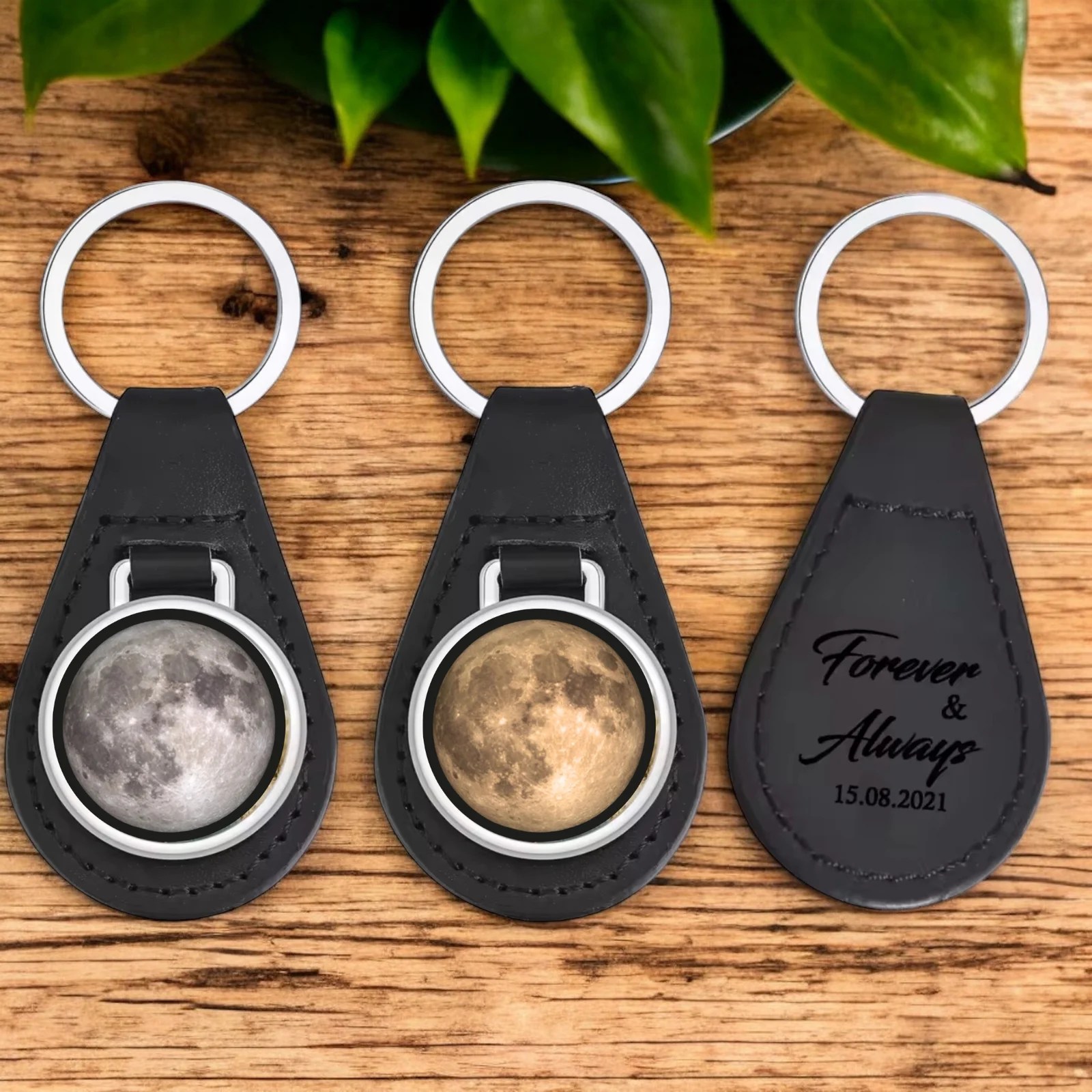 The moon image is printed in either grey or gold tone, making it a unique keepsake that’s both stylish and meaningful. For an extra personal touch, you can have a name, date, or message engraved on the back, turning this keyring into a cherished gift.