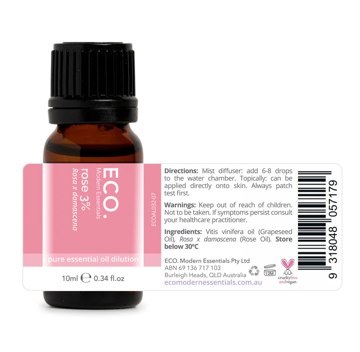 • Composition: 0.3ml pure Rose essential oil + 9.7ml grapeseed carrier oil