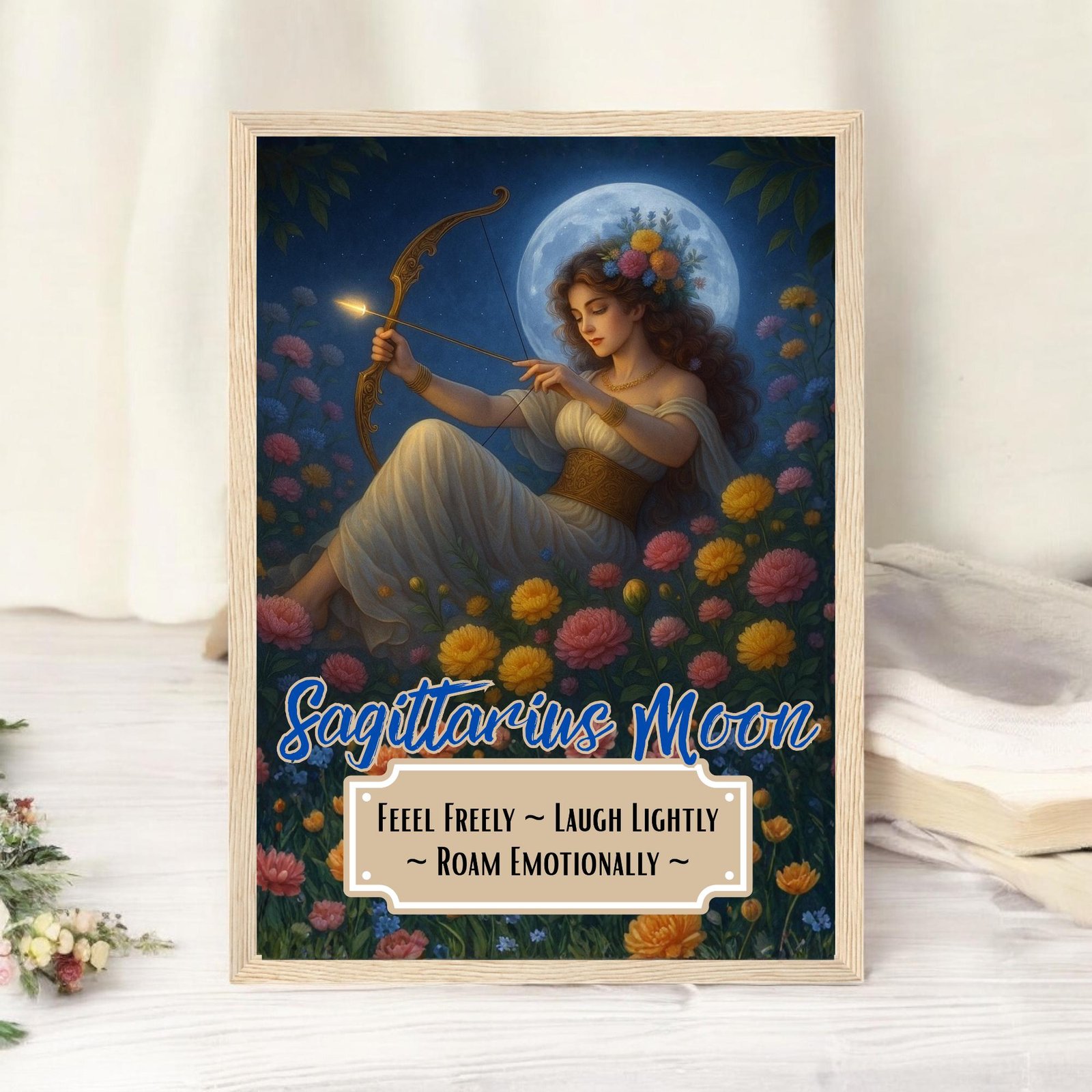 Sagittarius Moon Goddess Traits Print – Astrology Wall Art, Framed or Unframed