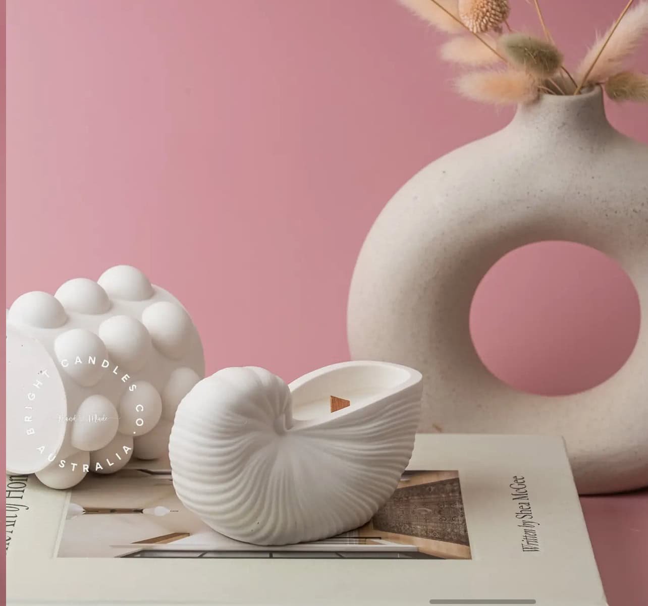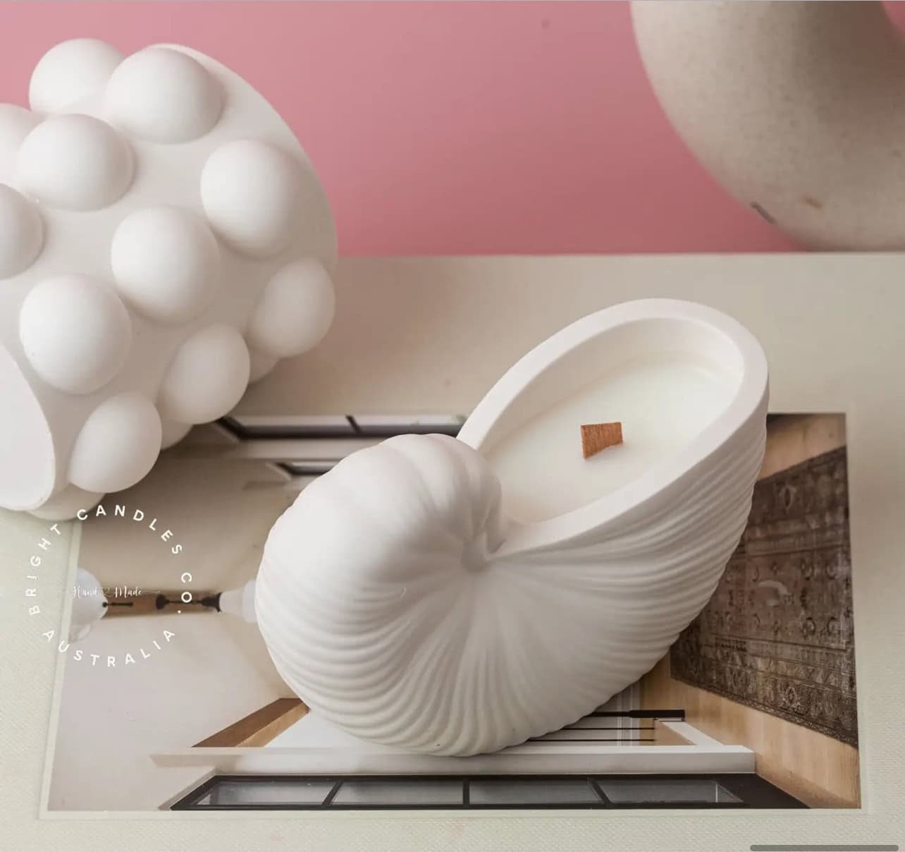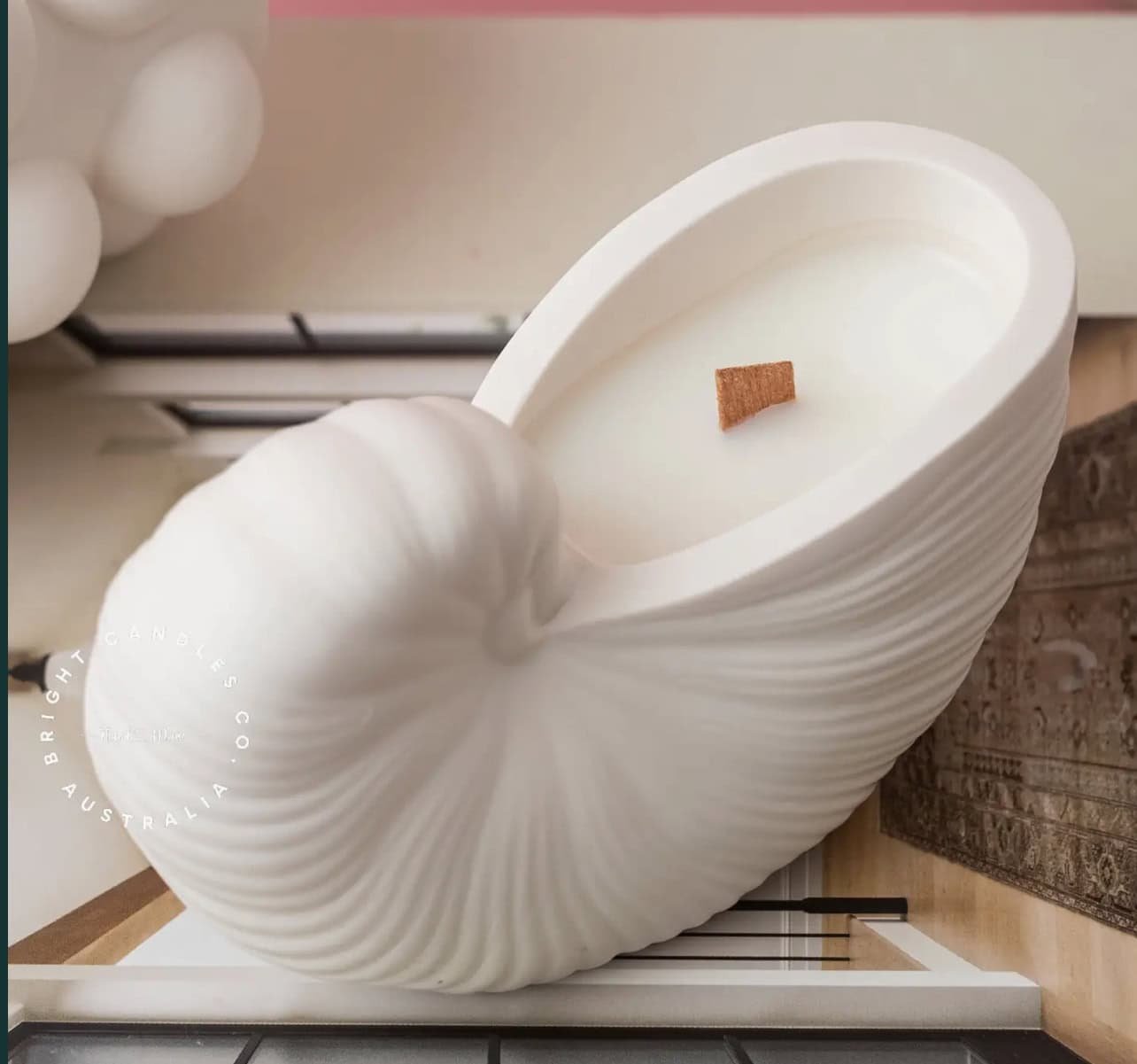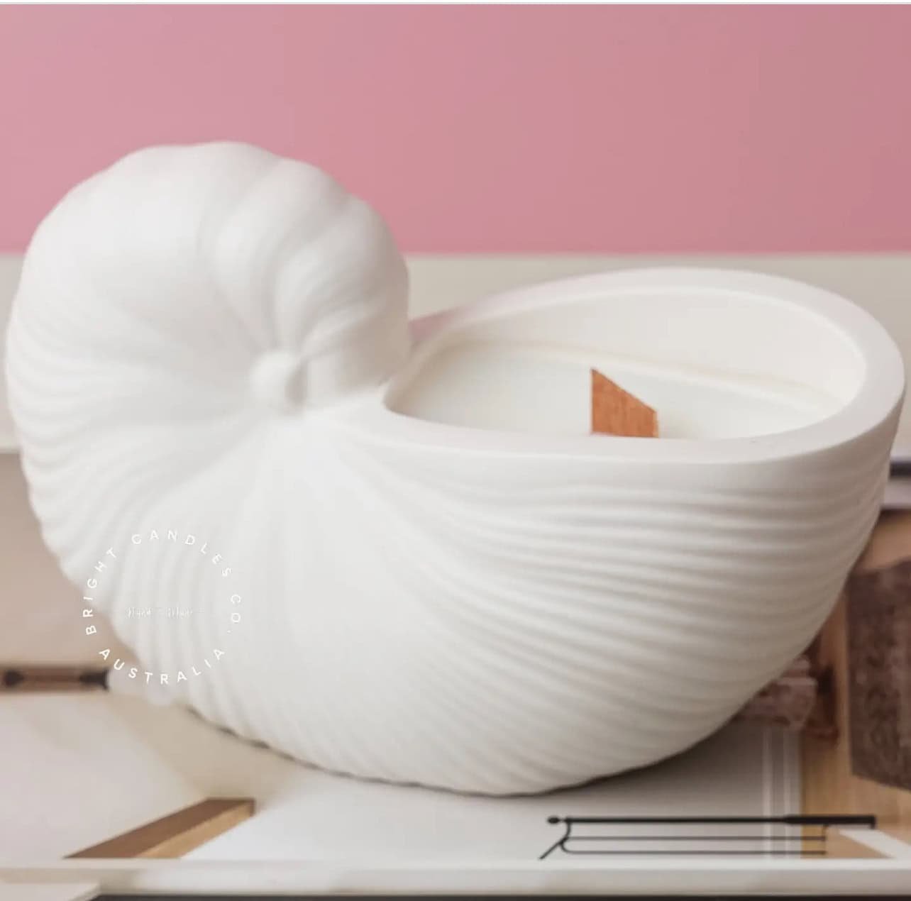 Seashell Scented Candle. Beautiful white shell design candle vessel filled with coconut soy wax and scented with your choice of fragrance.