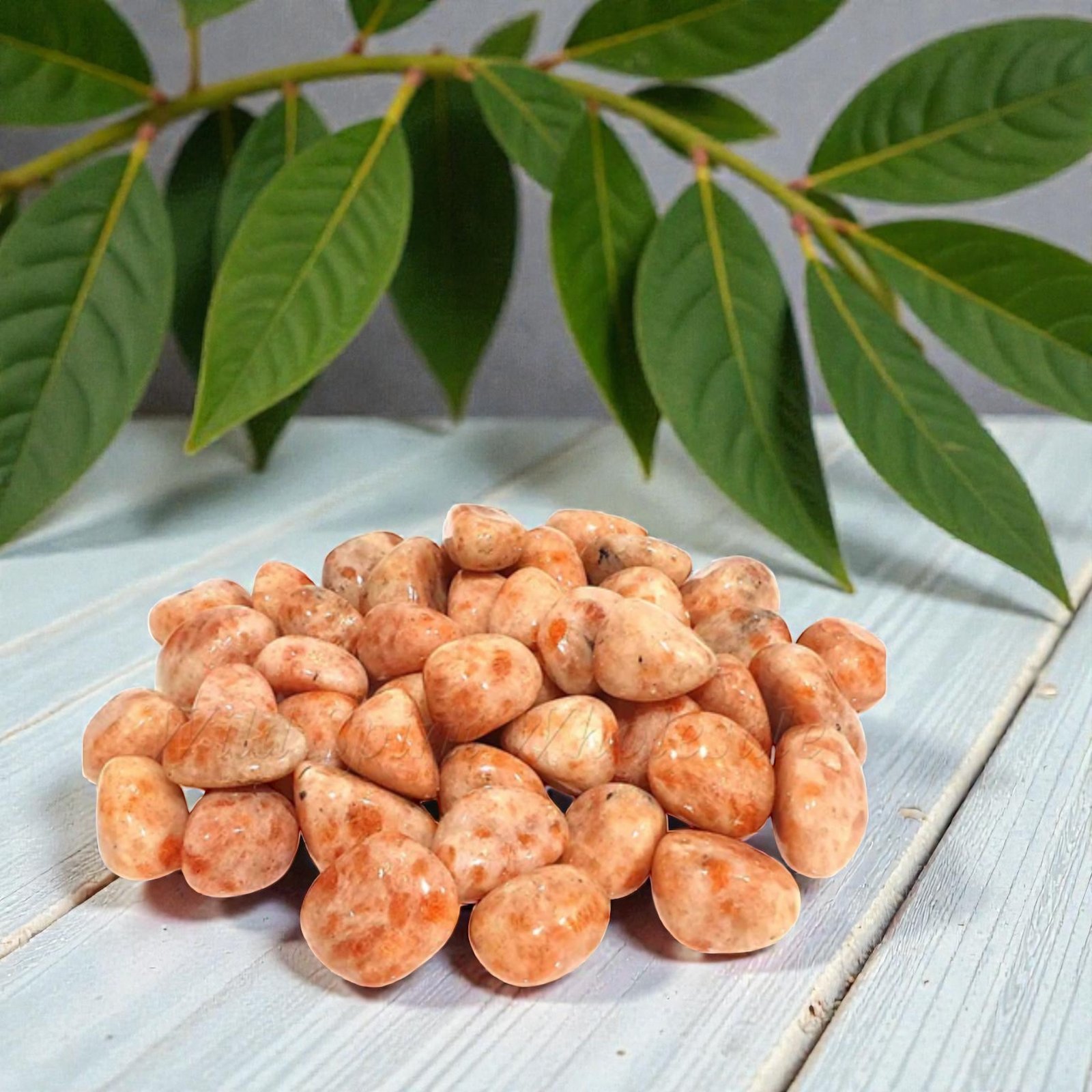 Joyful sunstone tumble stone (2–3.5 cm) for optimism, confidence and solar energy. Uplifting crystal for positivity and emotional balance.