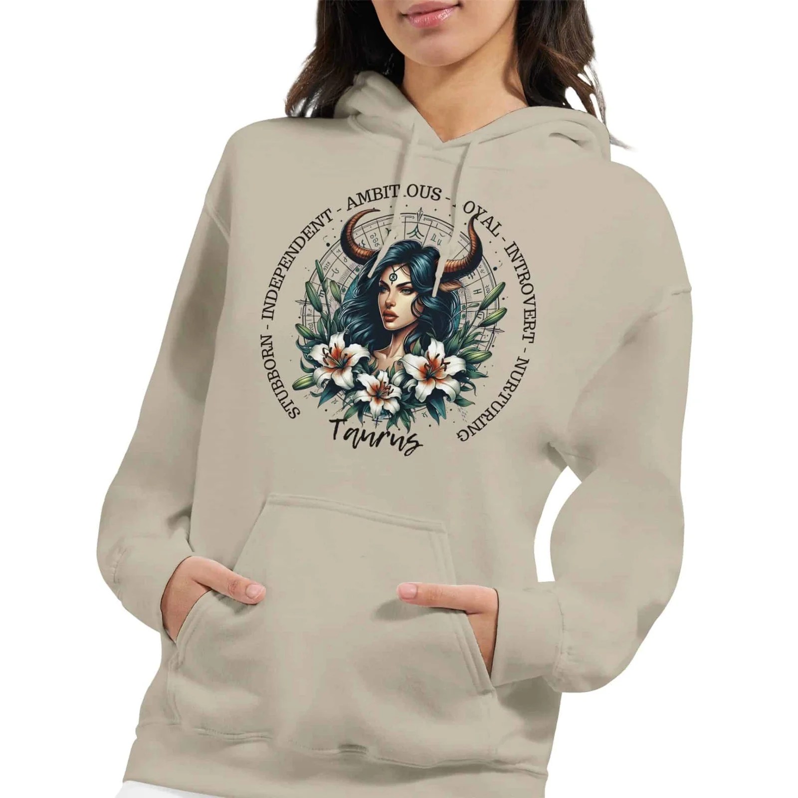 Featuring our Taurus horned woman with Lily’s , astronomy wheel and traits of Taurus Woman, this classic hoodie is the perfect addition to your winter wardrobe.