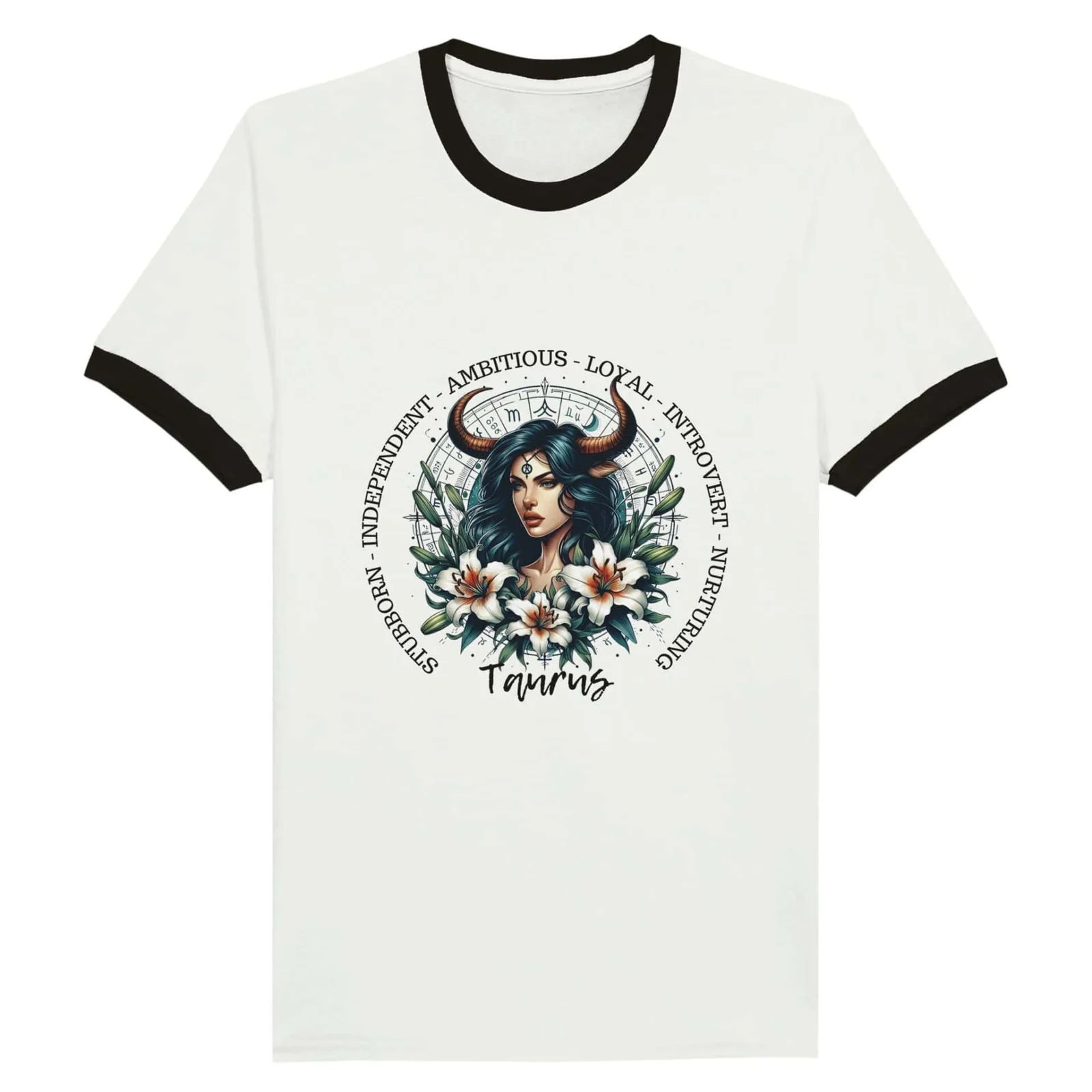 Taurus Woman Zodiac Traits Ringer T-shirt. Featuring our horned woman design this tee is perfect for all occasions.