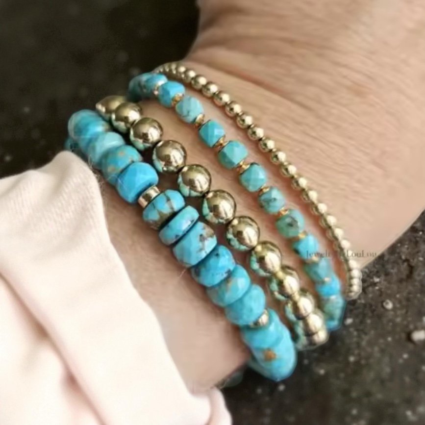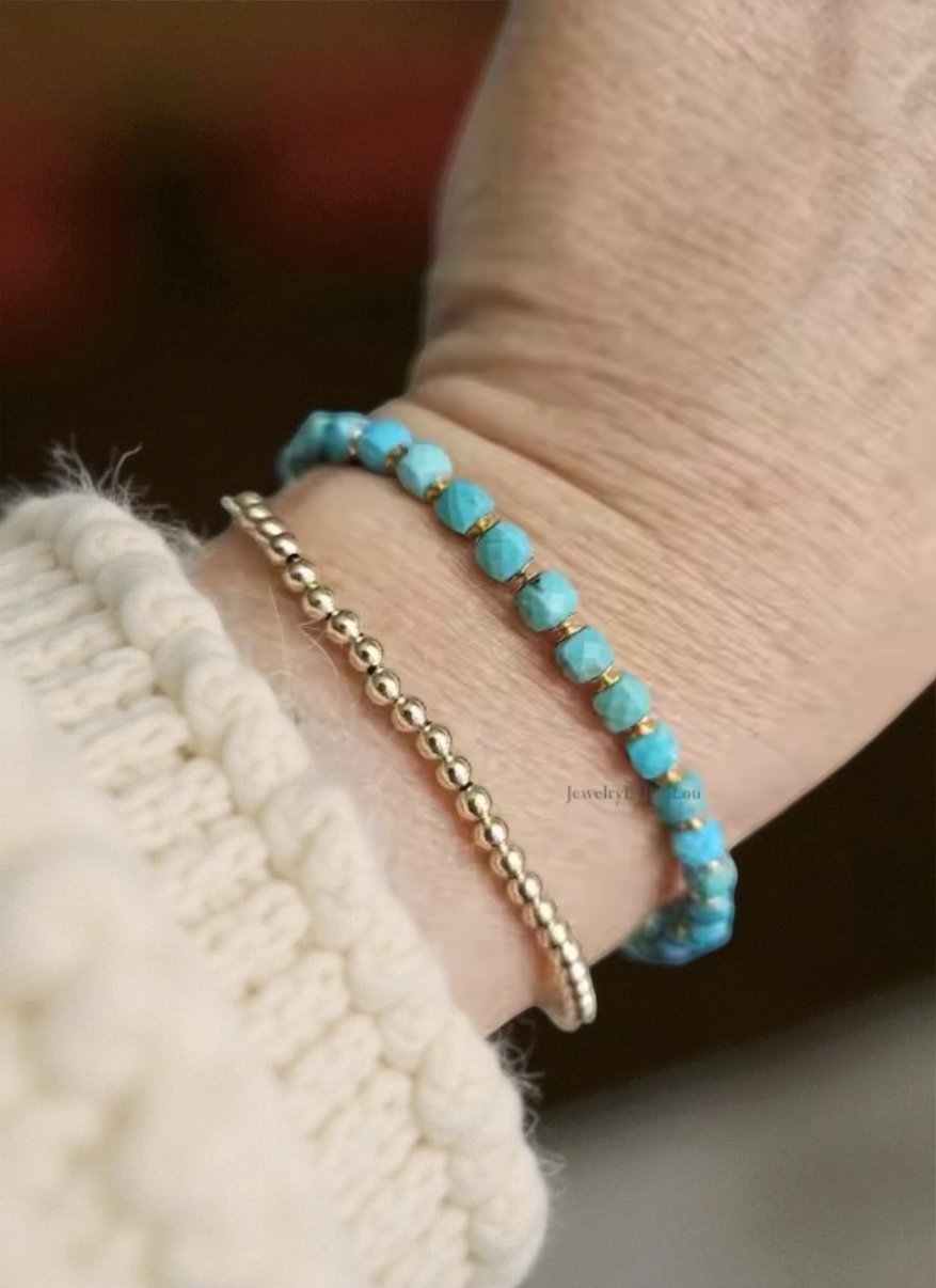 Elevate your energy and style with this handcrafted Arizona turquoise bracelet, featuring high-quality, naturally undyed multi-faceted turquoise beads (approx. 4mm) paired with gold-plated accents for a timeless boho-luxe finish. Each bead is unique, reflecting the raw beauty and spiritual depth of this ancient stone.