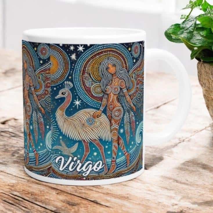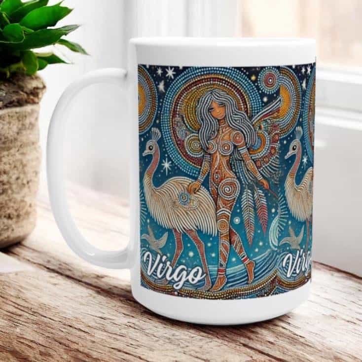 Virgo Maiden with Emu Celeste Aboriginal Art Zodiac Mug