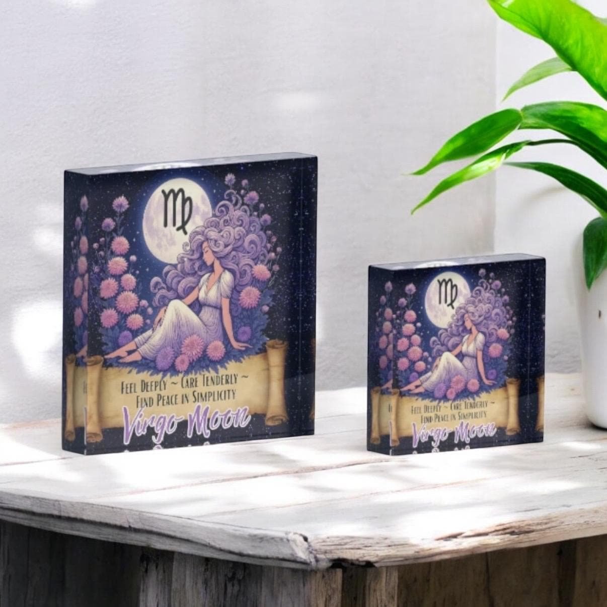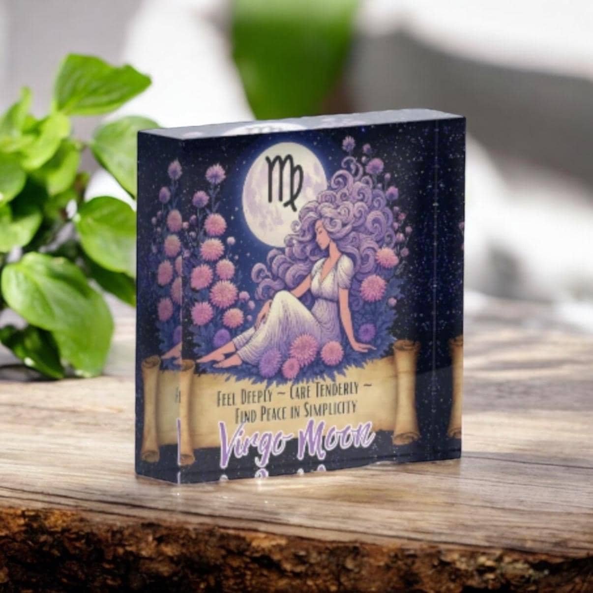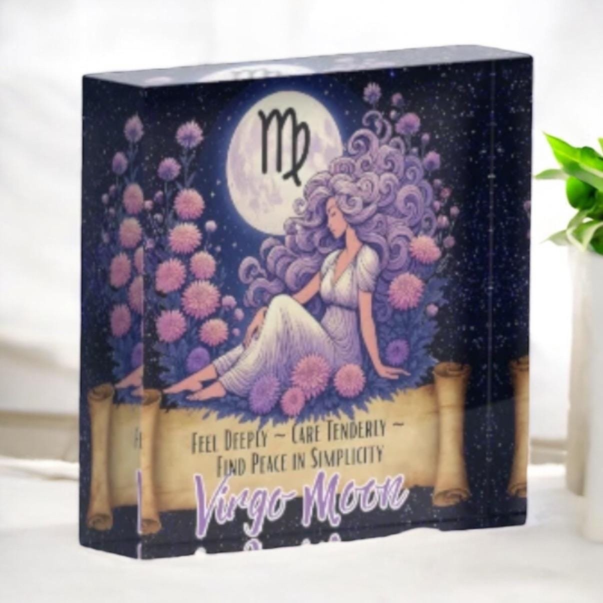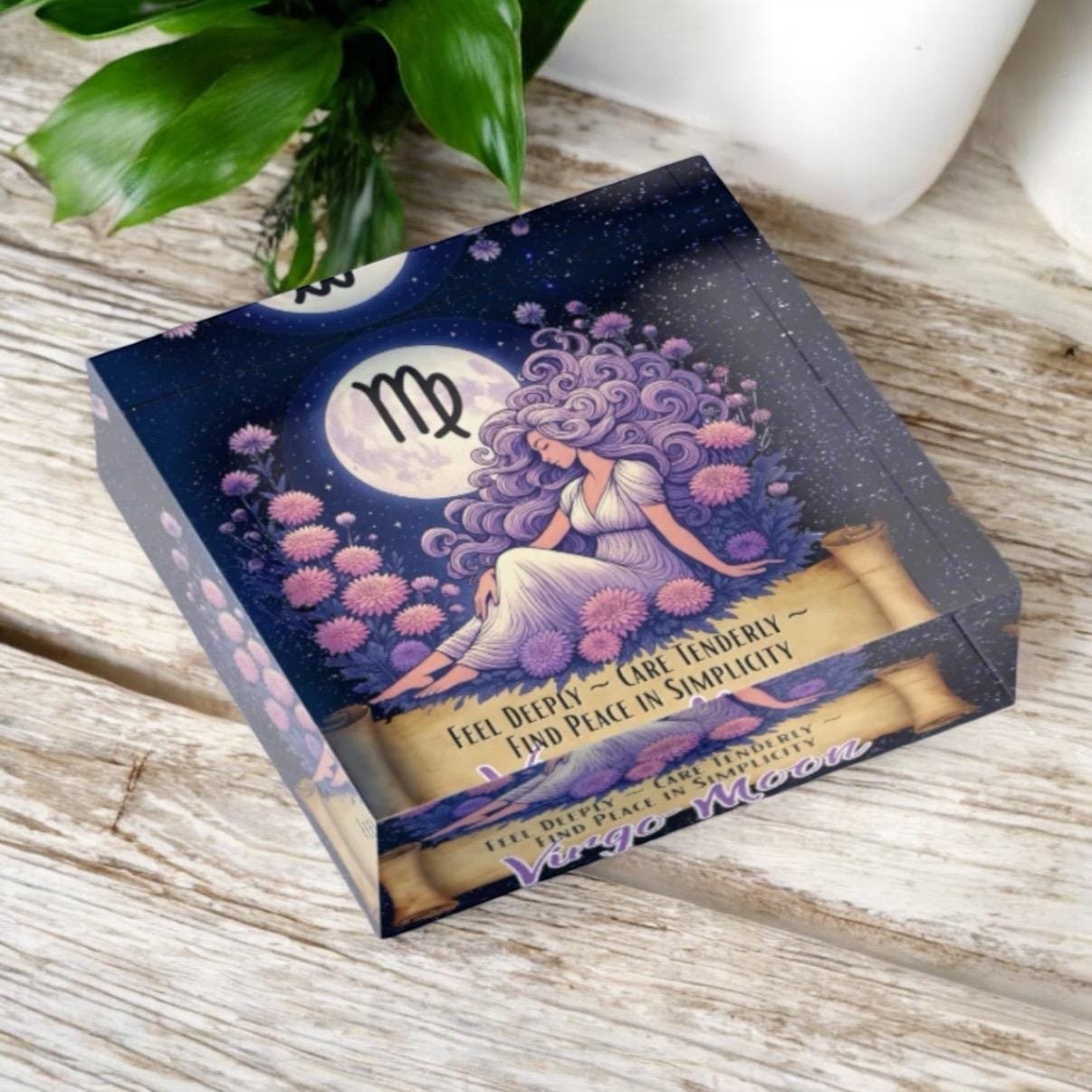 • Virgo Moon zodiac artwork printed on durable acrylic block