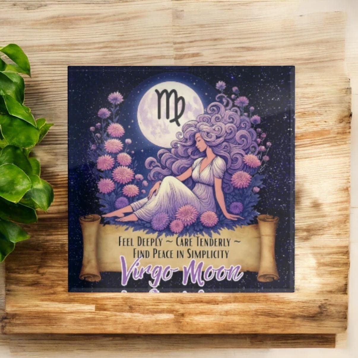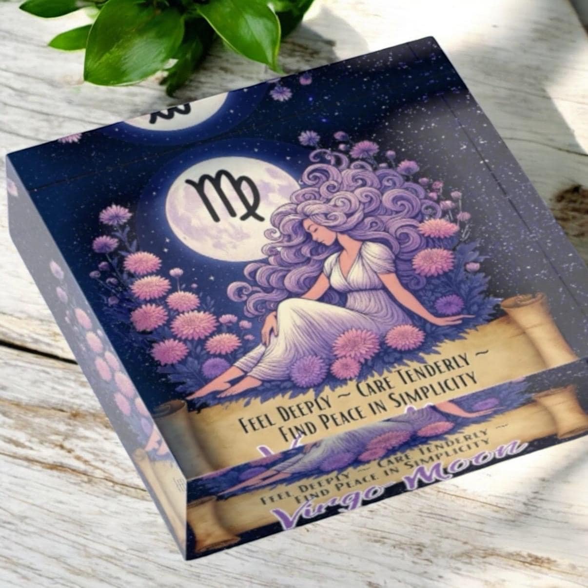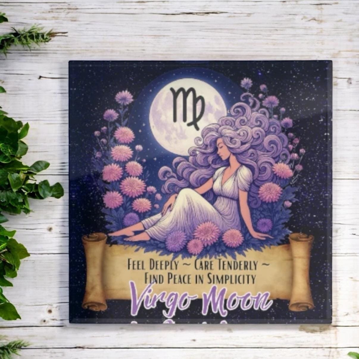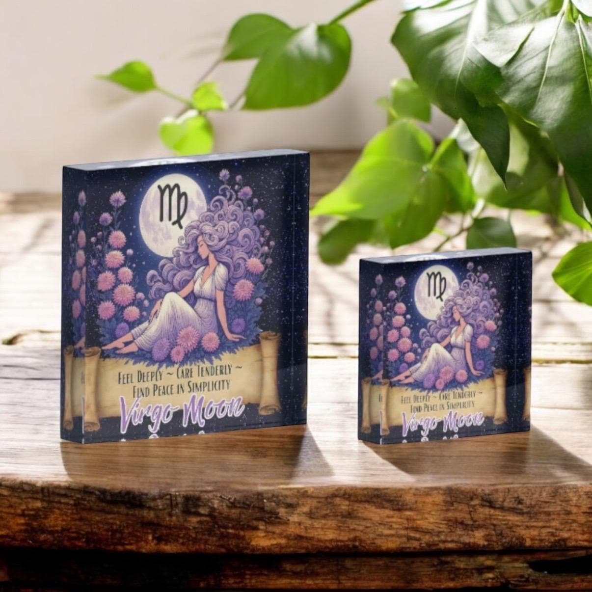 • Virgo Moon zodiac artwork printed on durable acrylic block