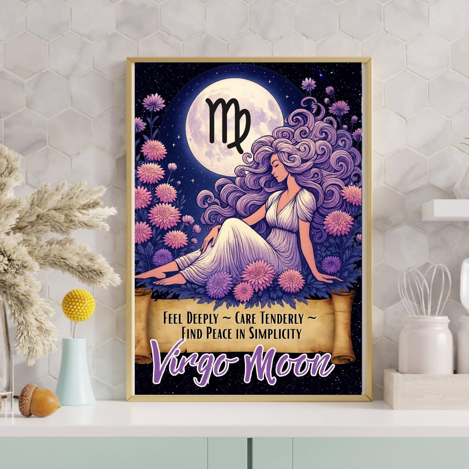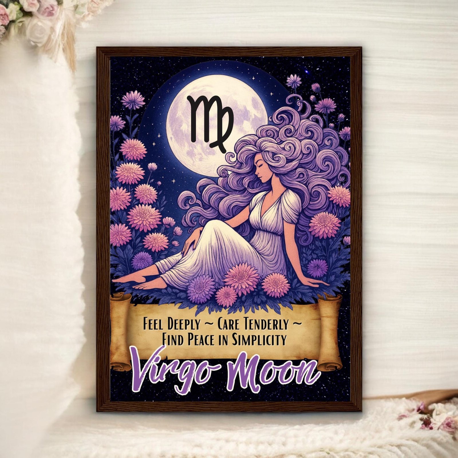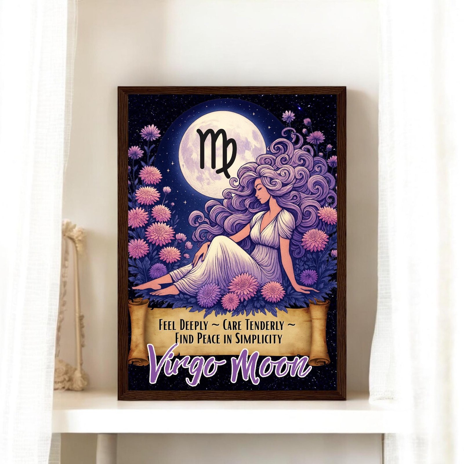 Virgo Moon Art Print: Zodiac Astrology Decor – Framed Celestial Wall Art