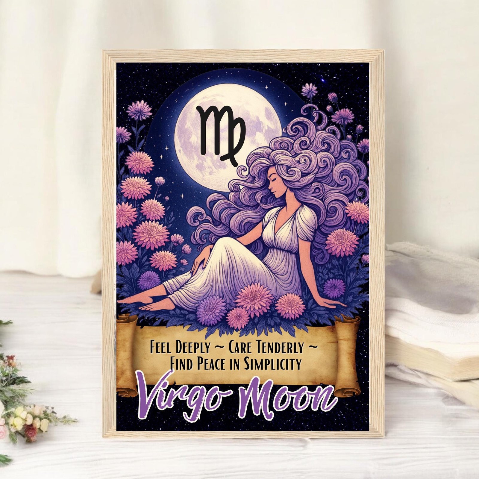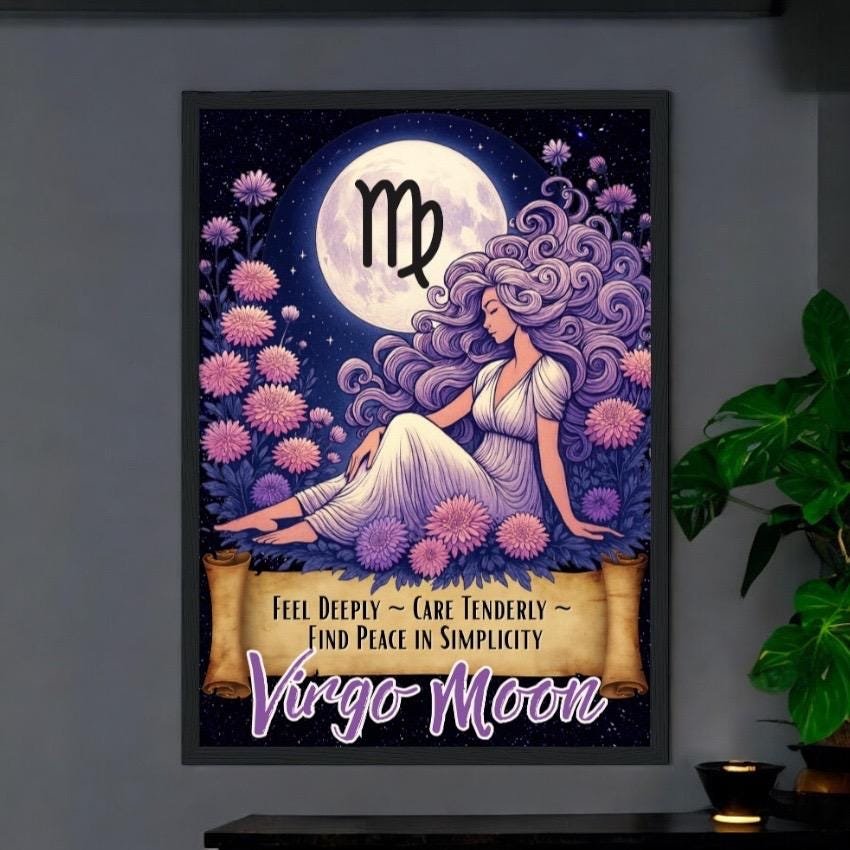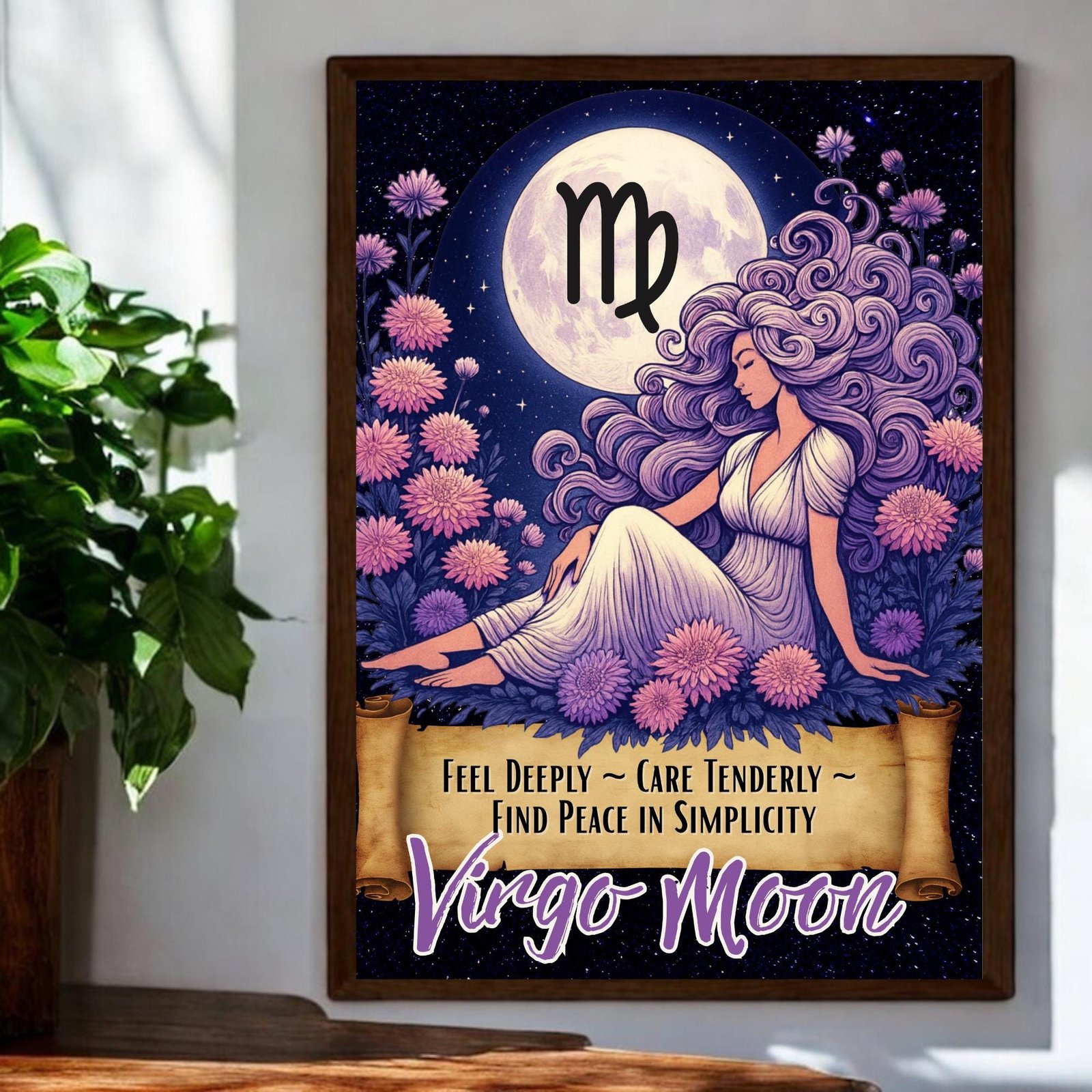 Virgo Moon Art Print: Zodiac Astrology Decor – Framed Celestial Wall Art