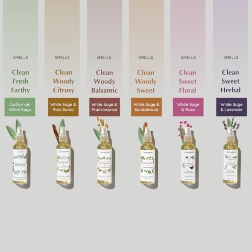 White Sage Smudge Spray Gift Set by Aromafume | 6x50ml/1.7 fl oz | White Sage with Rose, Lavender, Palo Santo, Sandalwood, Frankincense | Sage Sprays for Cleansing Negative Energy & Protection .au Home