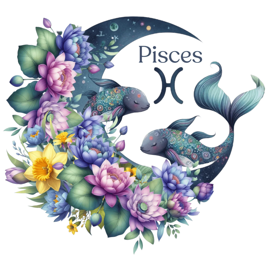 Water Lily: Symbolise beauty, purity and innocence. The water lily with its delicate petals floating serenely upon tranquil waters, embodies the essence of Pisces.